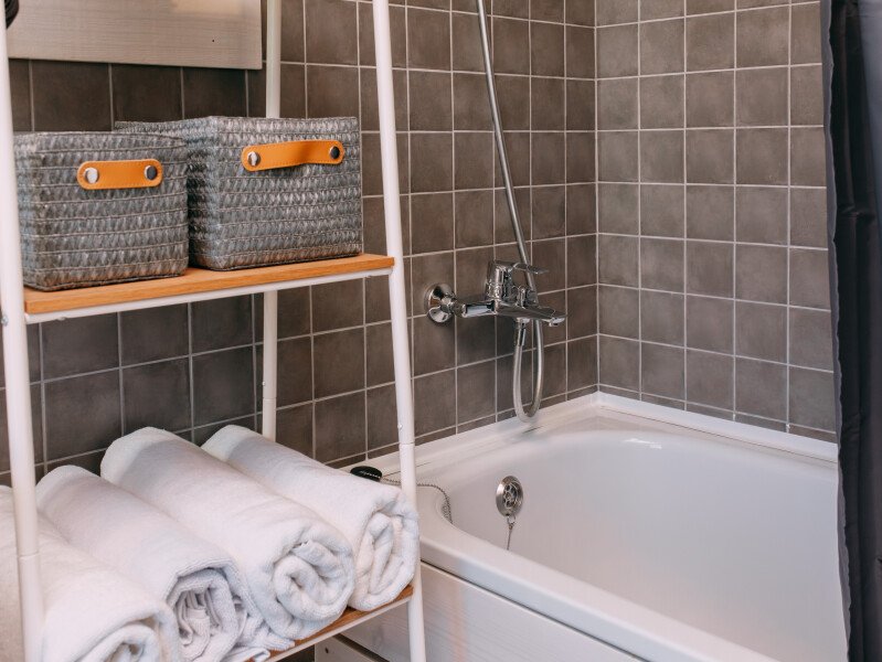 Санузел и ванная: со всем необходимым — салфетки, бумага, гель для душа, шампунь, кондиционер, жидкое мыло. Зубная щетка.