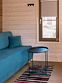Гостиная зона: с панорамными окнами, большим диваном (трансформируется в спальное место), телевизором и журнальные столики в 3 вариантах, настольные игры.