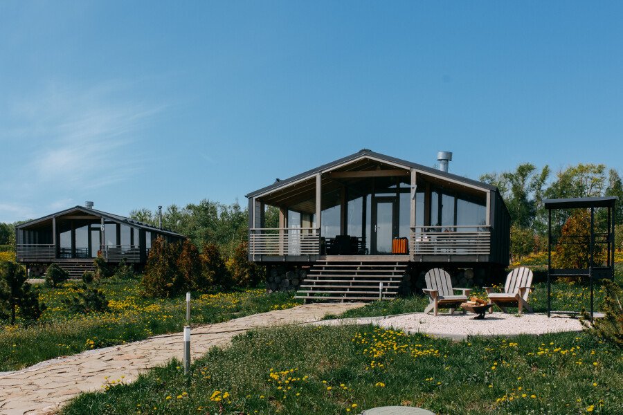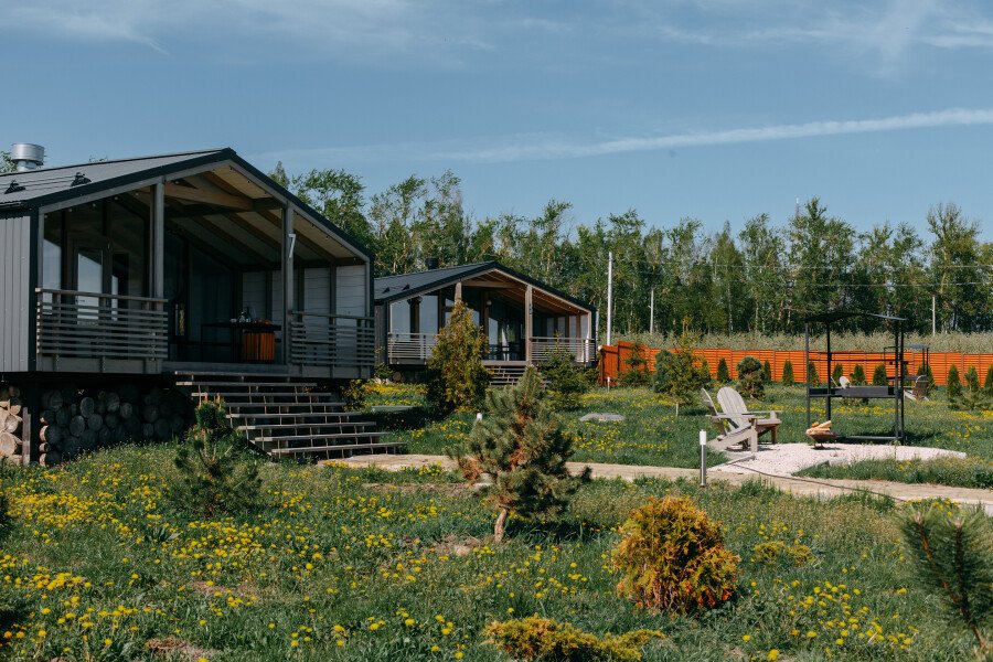 Загородный эко-клуб «Лес & сад» уютно расположился среди живописного ландшафта, окружённого яблоневыми садами и густым лесом. Здесь гостей ждут восемь комфортабельных барнхаусов, каждый из которых оснащён панорамными окнами и террасой, а также оборудован зоной для барбекю с мангалом. В распоряжении отдыхающих уютная костровая зона с удобными креслами, где можно приятно провести вечер. Для ценителей комфорта предусмотрены банные чаны у двух домов.