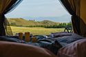 В тент-доме имеется кровать (дабл/твин), белое постельное белье, полотенца, плед и декоративные подушки, кресла на террасе. Кроме того, внутри расположены душ и раковина.