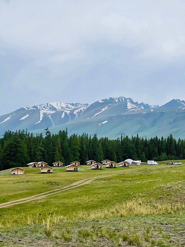 Гостям предлагается уникальный опыт проживания в уютных тент-домах или барн-тентах, которые гармонично вписываются в окружающий ландшафт. В ресторане-баре глэмпинга можно насладиться аутентичной алтайской кухней, где каждое блюдо приготовлено из свежих фермерских продуктов. Утренний завтрак, состоящий из горячей каши, разнообразных яичных блюд и ароматной выпечки, в сочетании с чаем или кофе, наполнит вас энергией на весь день.