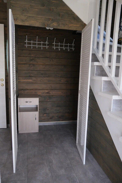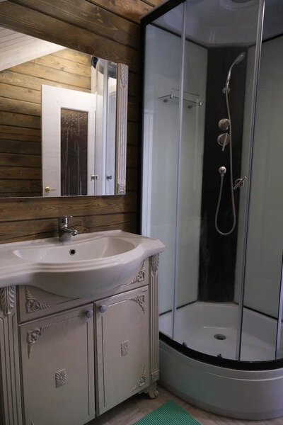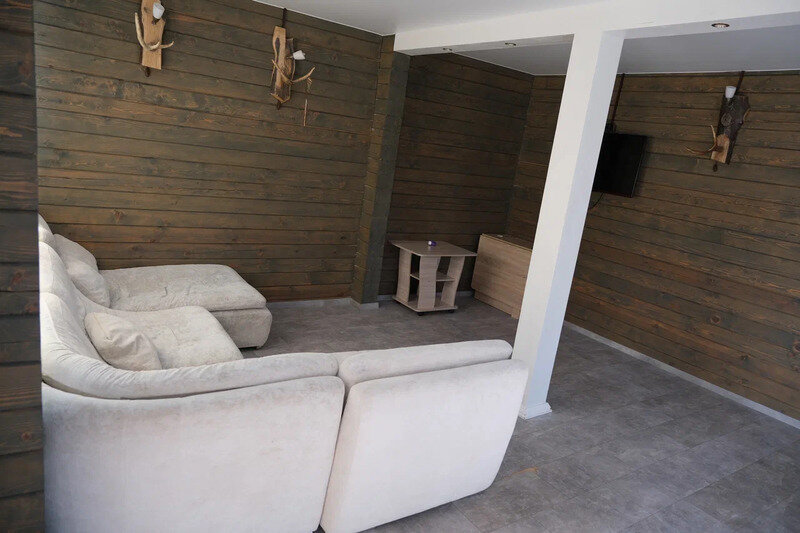 Просторная парная из натуральной древевсины и полноценный предбанник, где можно разместиться небольшой компанией.