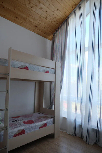НедостаткиШумоизоляция ужасная. Жили в люксе рядом с дорогой, такое ощущение что окон и стен нет( вода в доме с ужасным запахом . Матрасы надо менять, скрипят ужас.