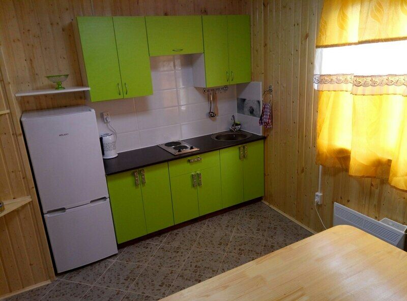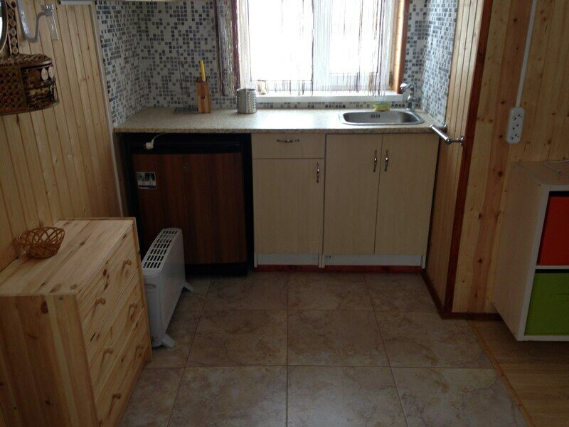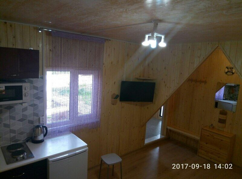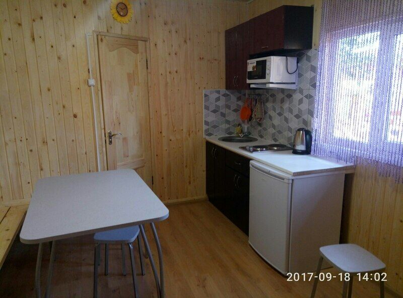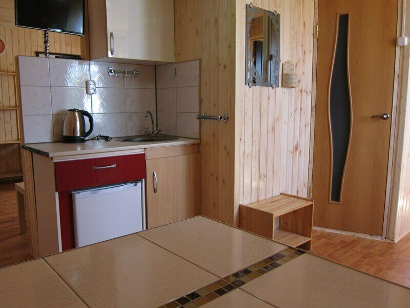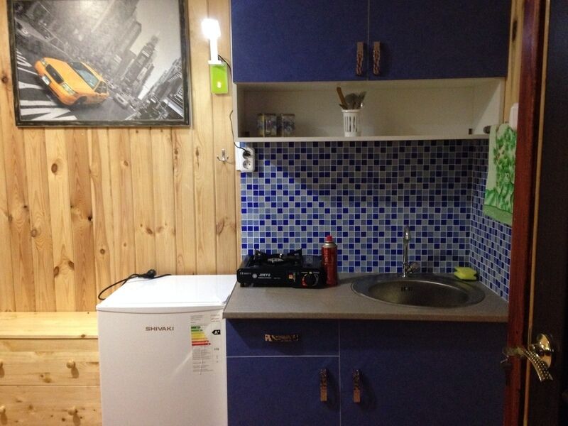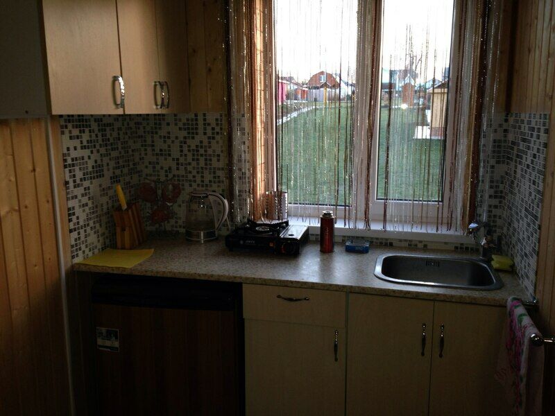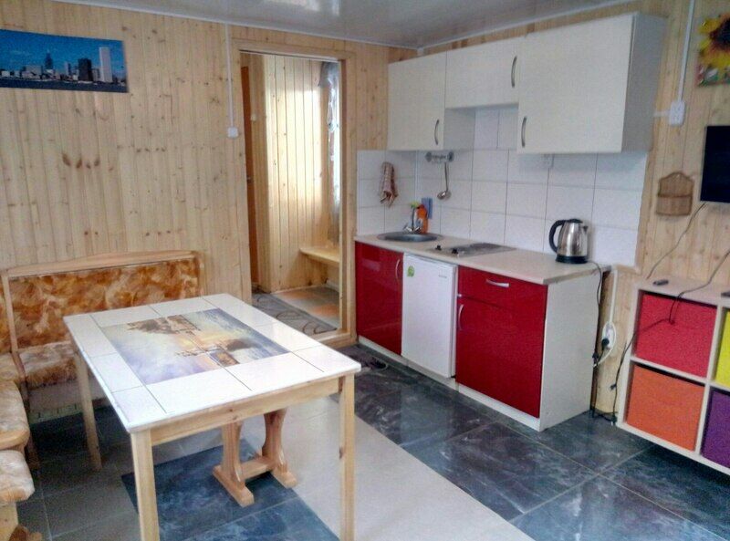 Домик со спальными местами, кухонной зоной и санузлом.