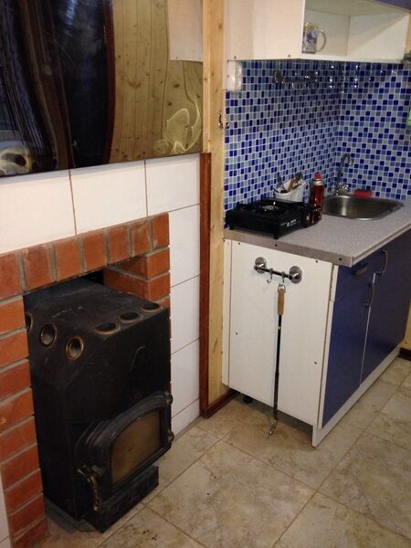 Двухэтажный домик с большой застекленной верандой, на ней можно собраться компанией из 20 человек, стоят два больших стола с лавками, журнальный столик с креслами, утром можно посидеть и попить кофе любуясь красотой природы. Дополнительно стоит диван. На первом этаже расположена гостиная с камином напротив стоит диван, он раскладывается, на нем могут разместиться два человека, телевизор, так же на первом этаже кухня. Санузел и вода в доме,.
