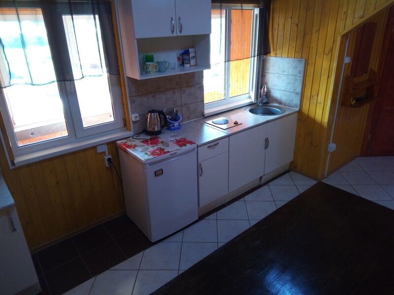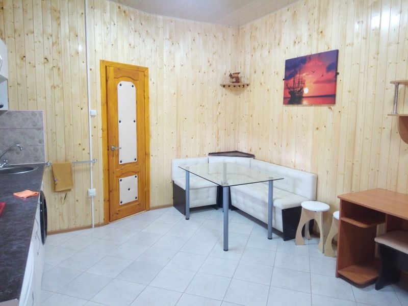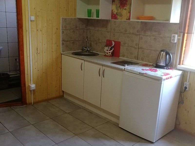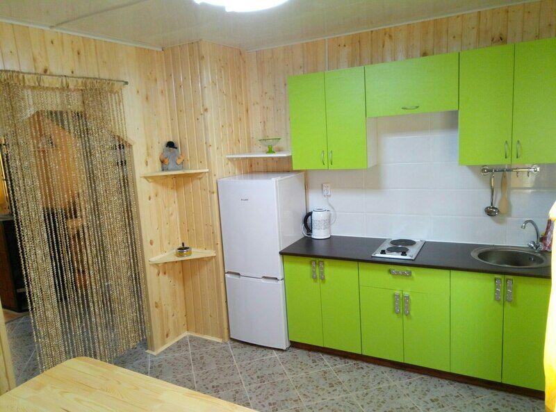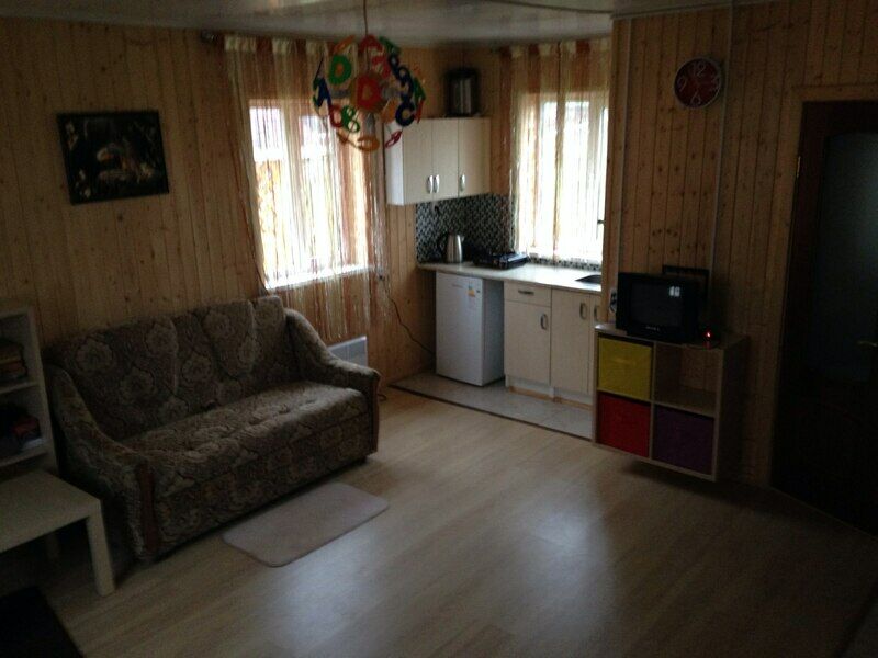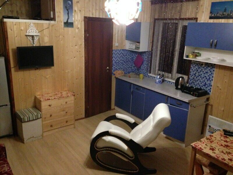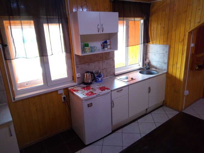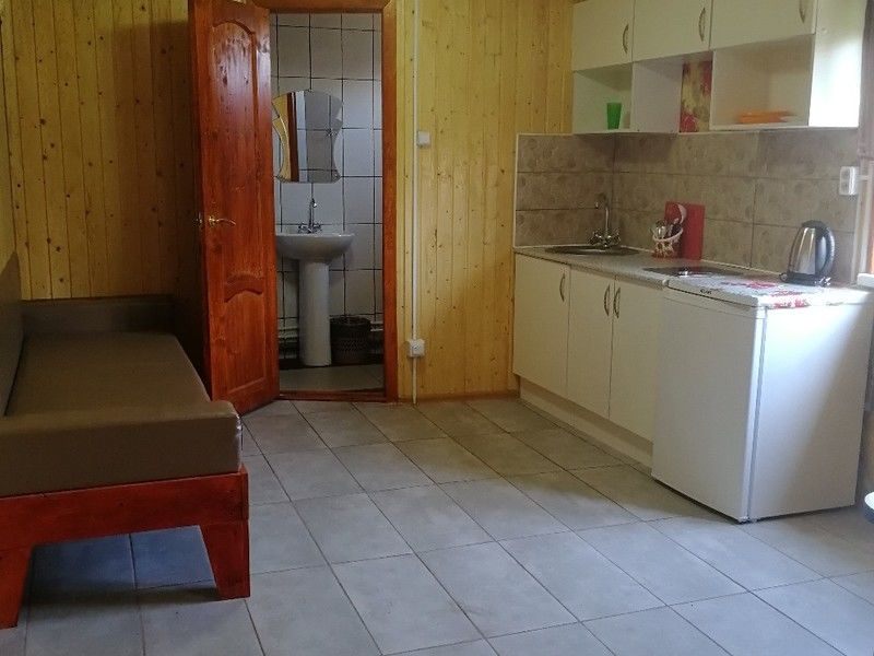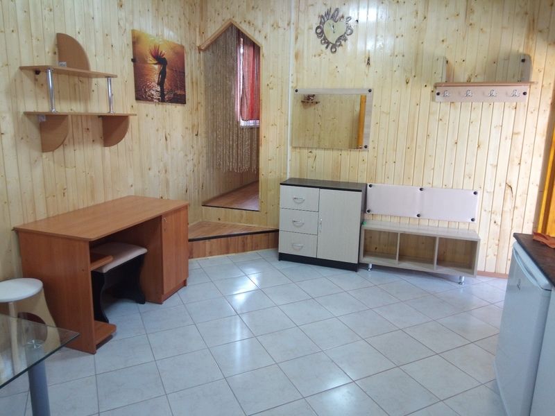 Одноэтажный дом-студия с кухонным уголком со всем необходимым, спальными местами и санузлом. У дома беседка с мангалом, садовые качели.