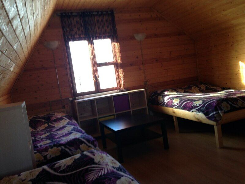 Двухэтажный просторный домик будет удобен как для большой компании, так и для нескольких отдыхающих. Рядом есть качели и беседка. Комфорт и внутреннее убранство дома не оставит вас равнодушными.