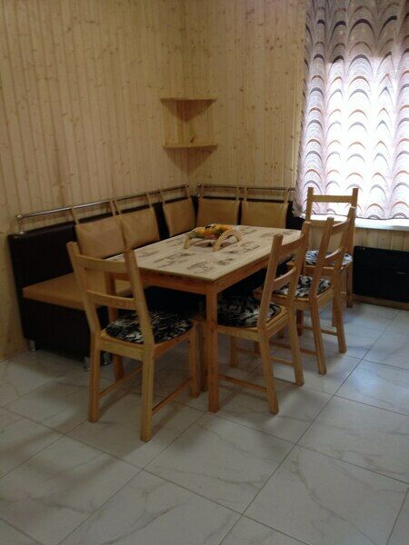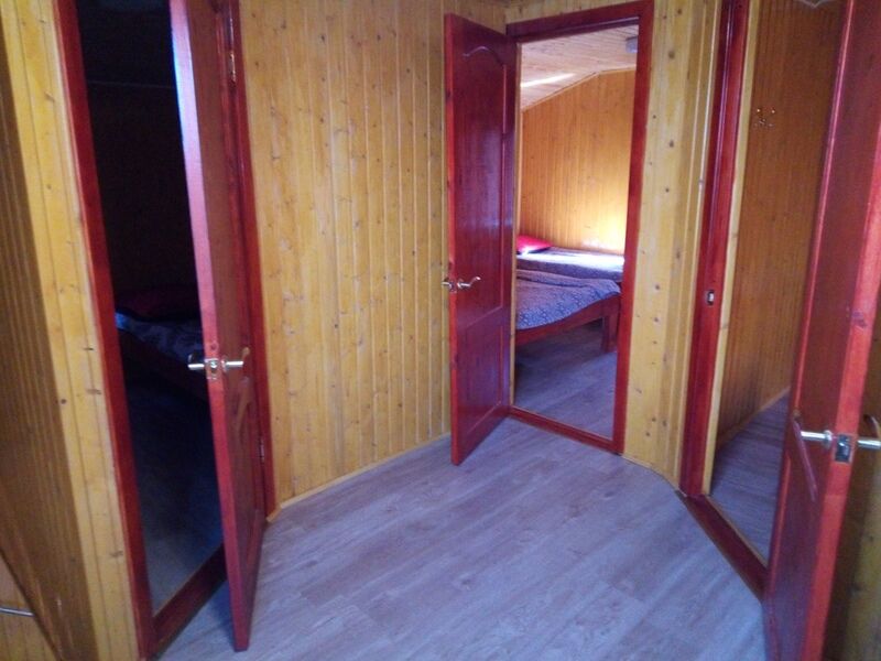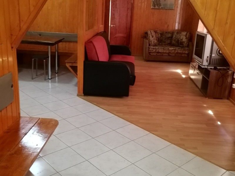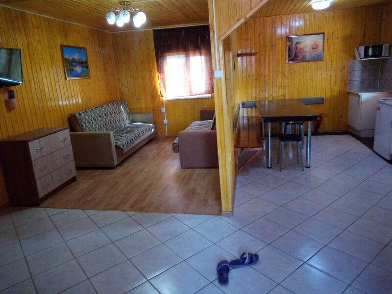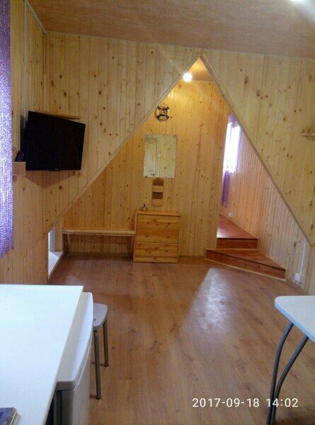 2-х этажный, возможно проживание двух семей т.к имеет 2 входа, 5 спальных мест, на каждом этаже кухня, санузел, телевизор, холодильник, чайник, эл.плита, посуда, беседка, мангал.