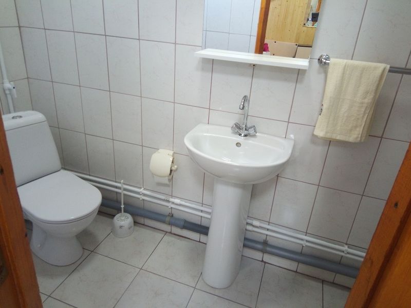 Большая открытая веранда позволит собраться всей компанией за столом на свежем воздухе и пожарить шашлык. На первом этаже расположен каминный зал с диванами (все раскладываются), просторная кухня со всем необходимым. Большой коридор, в нем стоит колонка с цветомузыкой, санузел.