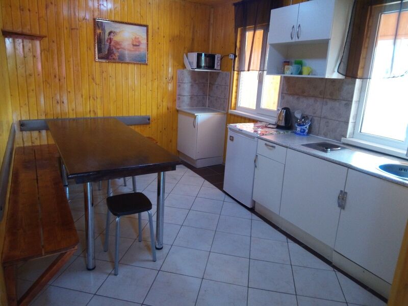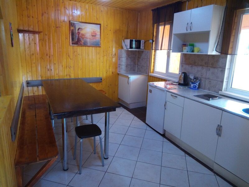 Рядом с домиком беседка и мангал. Дом отлично подойдет для семейного отдыха.
