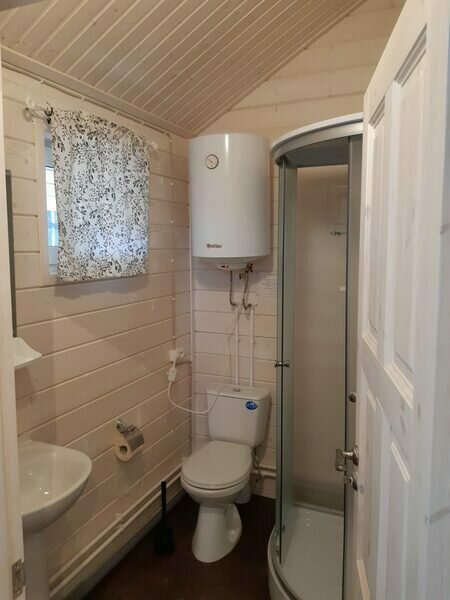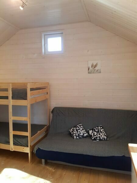 Уютный дом для комфортного отдыха 4 x человек. В доме просторная, светлая гостиная с кухонной зоной и небольшая спальня с двух кроватью. В доме есть все необходимое для приготовления пищи (микроволновая печь, индукционная плита, электрочайник, посуда на 4х человек и д.р. Дом оборудован своим отдельным санузлом с душевой кабиной. Есть своя крытая терраса и бесплатная парковка около дома.