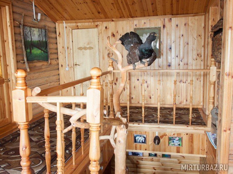 Просторный двухэтажный коттедж. В коттедже «Охотничий» Вас ждет большая сауна, расположенная на первом этаже, с джакузи и камином. Просторные комнаты, которые находятся на втором этаже.