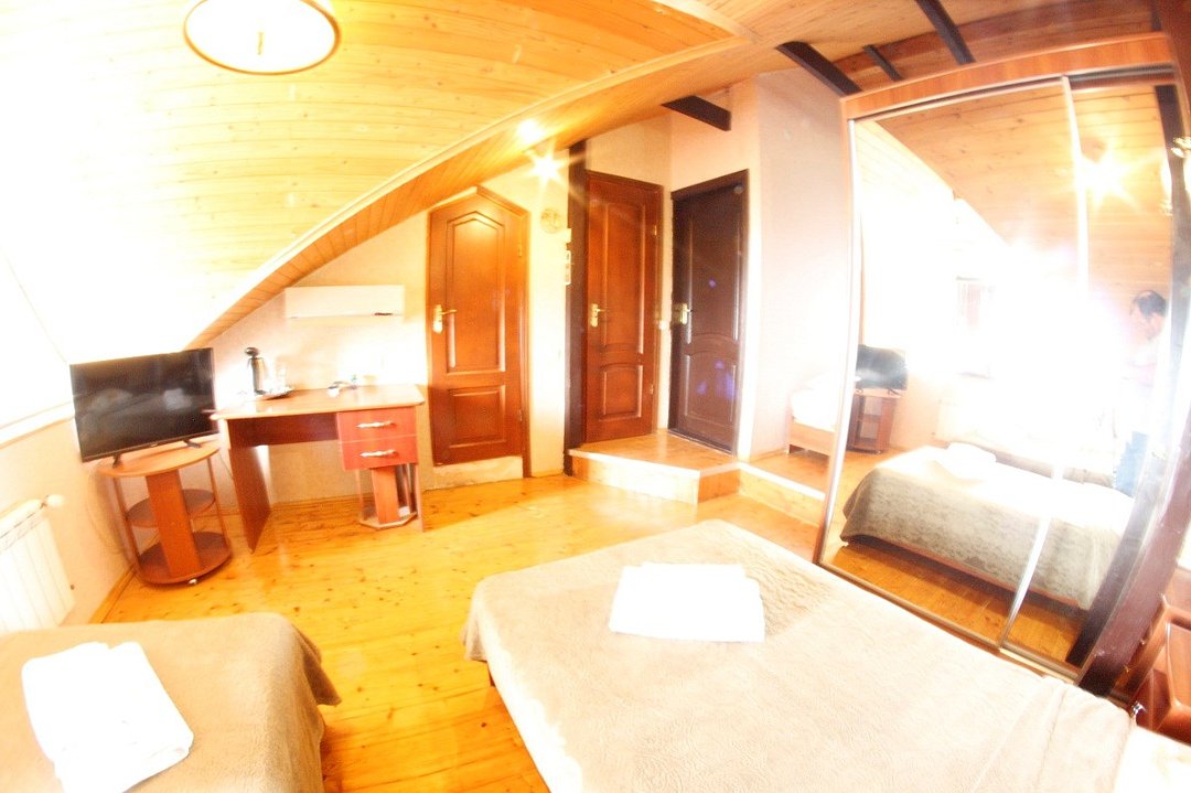 Компактный уютный номер, хостельного типа на 3 человека. В номере отдельный вход со двора, собственный санузел и душевая. Три отдельных места на двухъярусных кроватях.