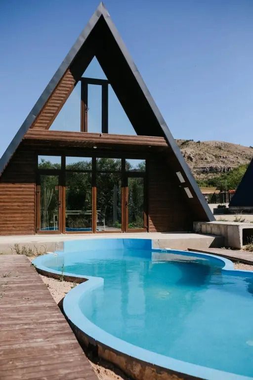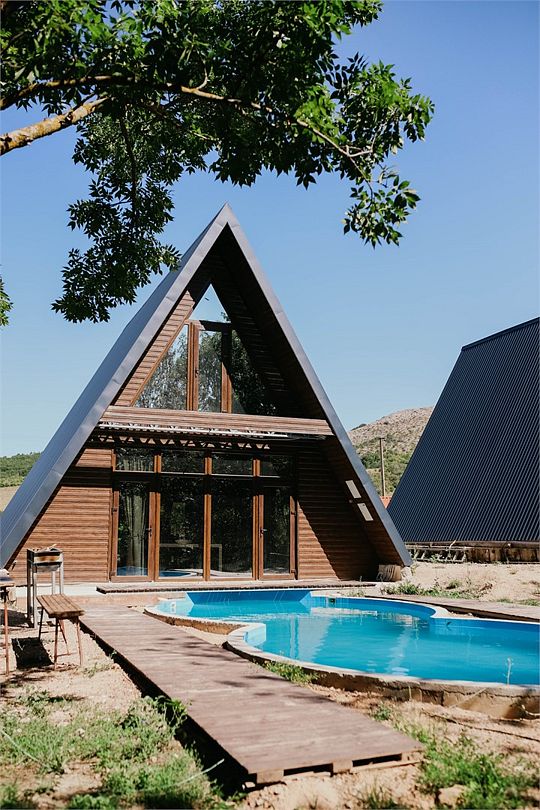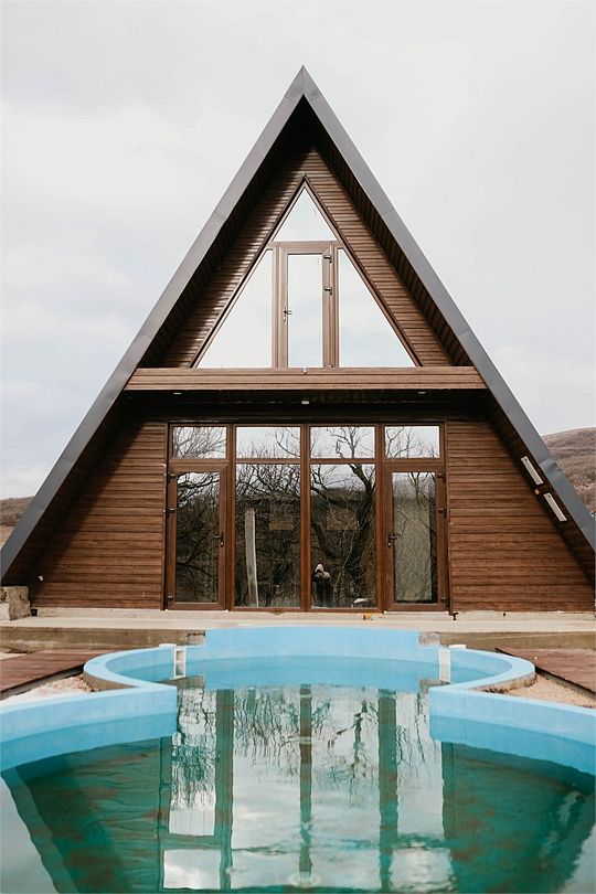 Коттедж в современном стиле "А-фрейм" рассчитан на проживание до 8 взрослых. Имеет две комнаты (разделен межкомнатными дверями), и два отдельных санузла с душем (для каждой комнаты свой санузел). Оснащен кухонным уголком с необходимой бытовой техникой (холодильник, микроволновая печь, электрический чайник). Есть телевизор со Smart TV, кондиционер и отопление. Панорамные окна с видом на горы и Долгоруковскую яйлу.Услуги и удобства