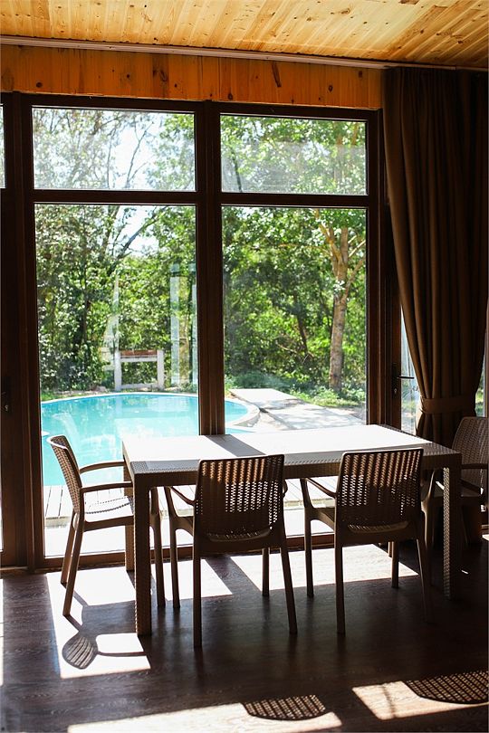 Wi-Fi, кондиционер, микроволновая печь, санузел, терраса, две двуспальные кровати, стулья, обеденный стол, зеркало, чайник, унитаз, отопление, душ, туалетные средства, мангал, панорамные окна, мини-холодильник, вид на горы, телевизор со Smart TV, вид на бассейн, экологичный подход, набор для приготовления чая и кофе, мыло, можно с питомцамиВ гостиничном номере