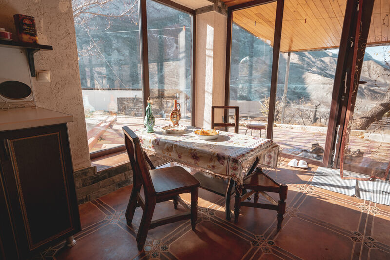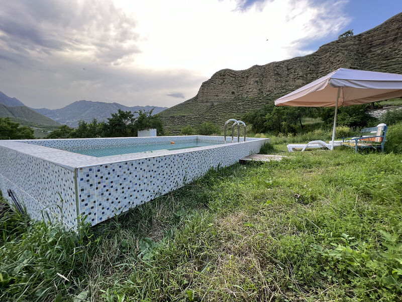 Бассейн функционирует в летний период и доступен только для постояльцев дома. Пользование зоны бассейна входит в стоимость проживания. Из бассейна открывается колоритный вид на горный пейзаж.