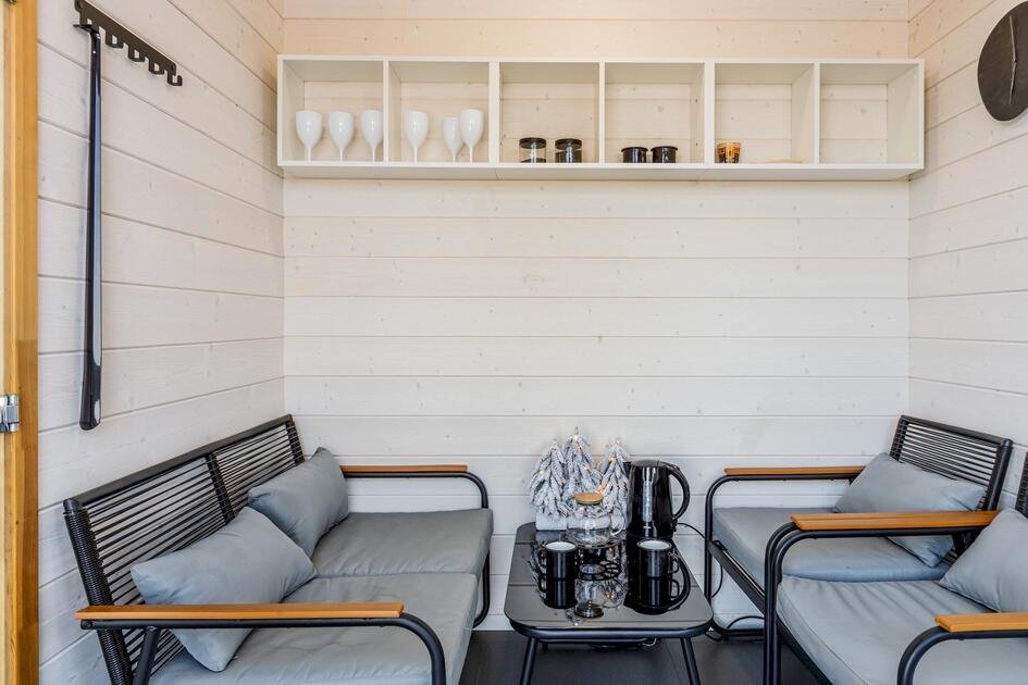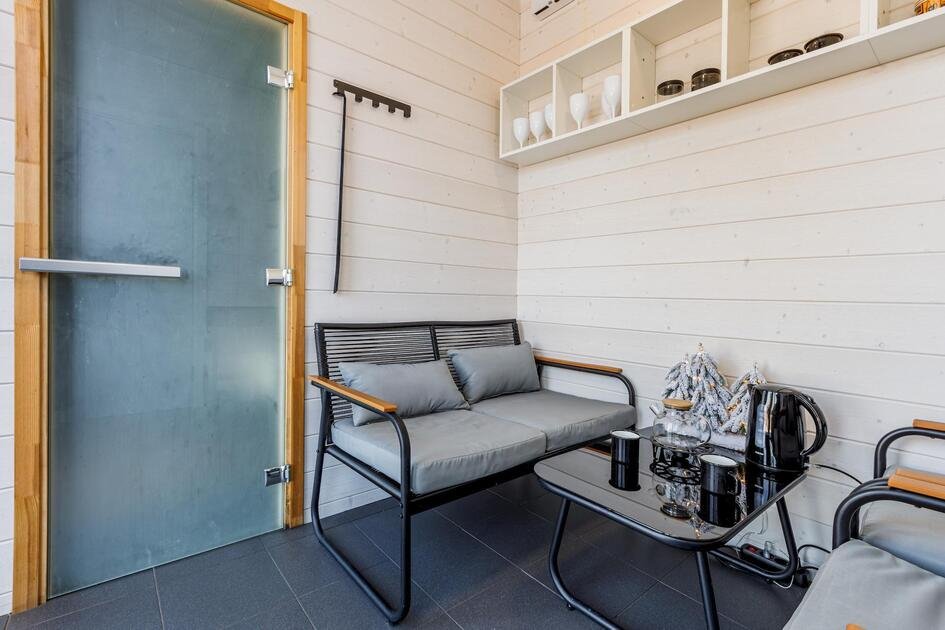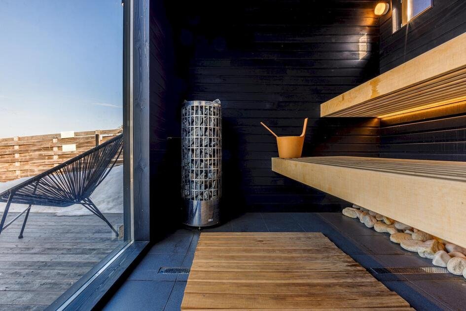 В трех минутах ходьбы расположены панорамная сауна и горячий чан, которые доступны за дополнительную плату по предварительной договоренности.