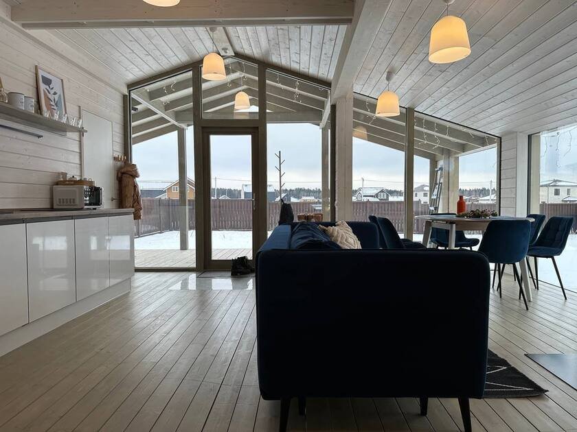 Внутри «Дубльдома» гостей ждут три отдельные спальни, стильная кухня-гостиная с диваном-кроватью, а также уютный санузел и ванна. В доме есть вся необходимая мебель, современная техника, посуда, чистые постельные принадлежности и средства гигиены. Все это делает пребывание здесь максимально комфортным.