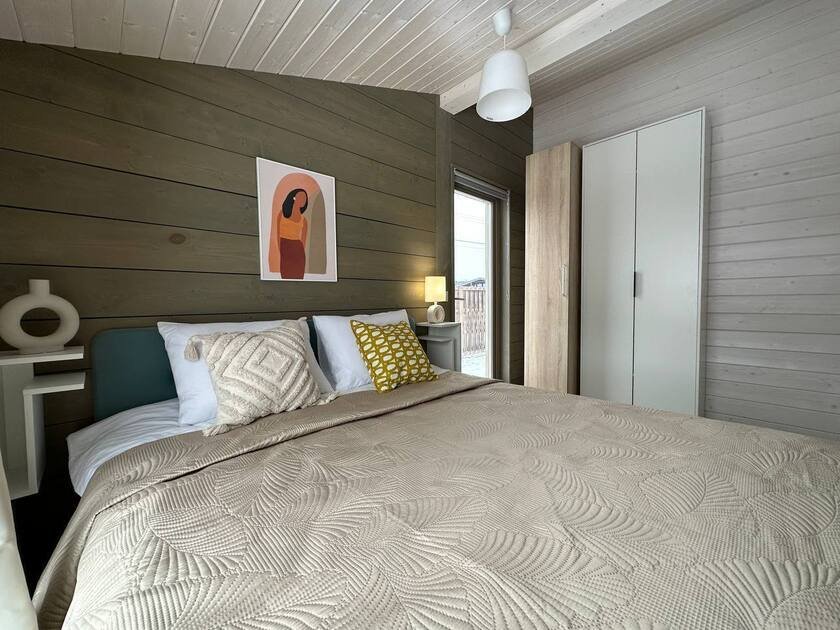 Современный дубльдом с панорамными окнами в престижном поселке Greenwood. Внутри расположены три изолированные спальни, кухня-гостиная с раскладным диваном, санузел с ванной и просторная терраса. Дом оснащен стильной мебелью, современной техникой, посудой, чистым бельем, полотенцами и базовыми средствами гигиены.