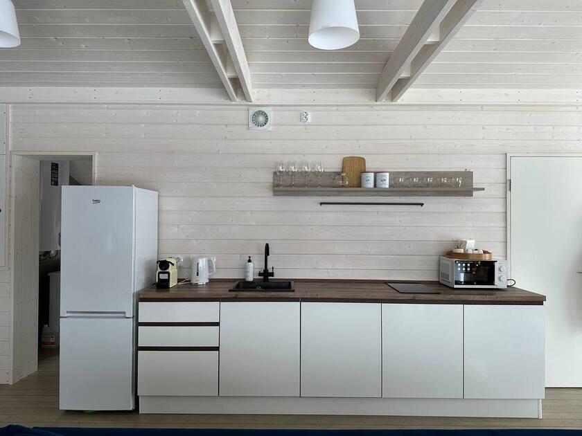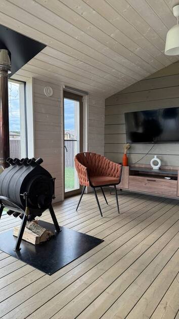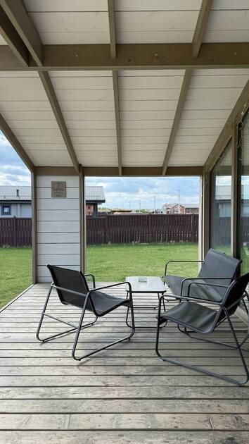 Вы можете начать день с завтрака на просторной террасе, позагорать на солнце или приготовить ароматные блюда на мангале. Вечером уютные кресла у костра станут отличным местом для наблюдения за звездами. Для безопасности установлено видеонаблюдение на входе.
