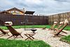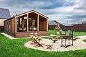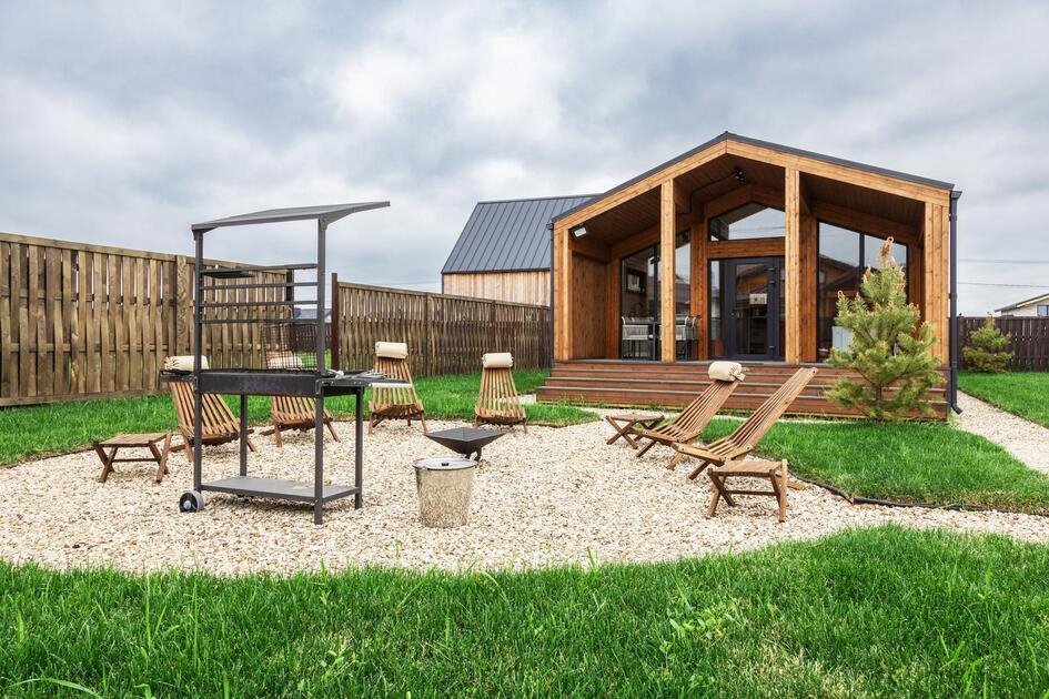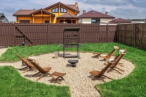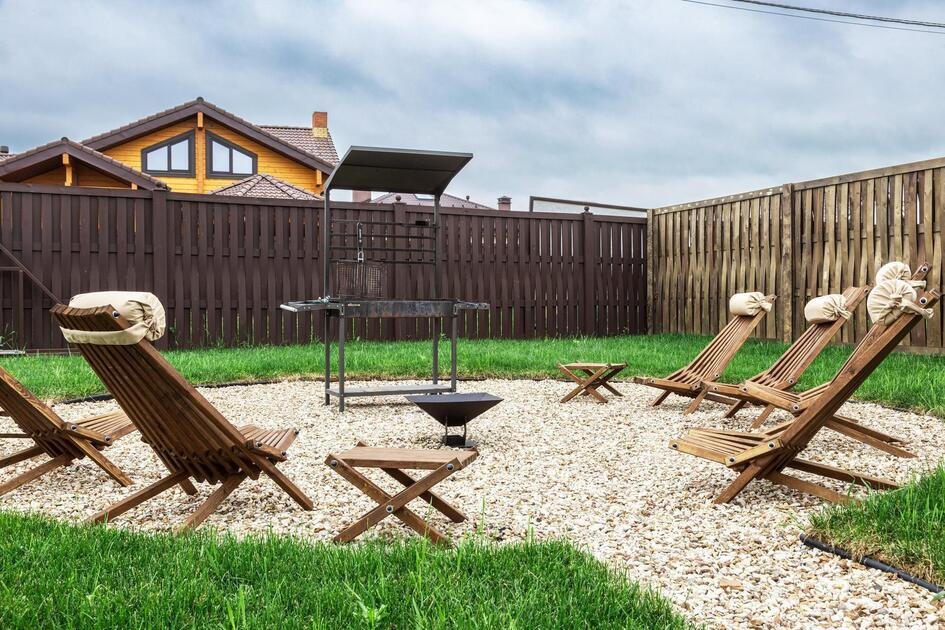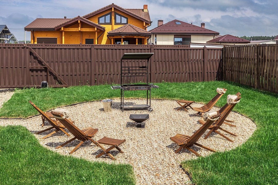 На прилегающей территории площадью девять соток гостей ждут разнообразные возможности для отдыха. Начните утро с завтрака на террасе, наслаждаясь солнечными лучами, а затем приготовьте вкусные блюда на мангале. Вечером уютное кострище станет идеальным местом для релаксации под звездным небом.
