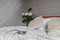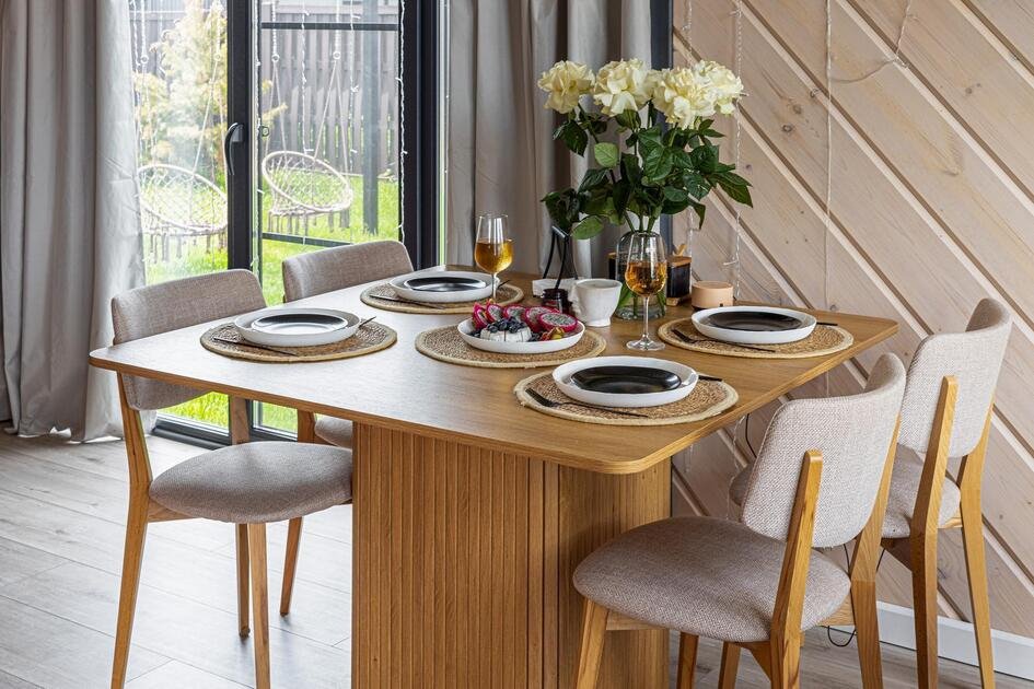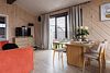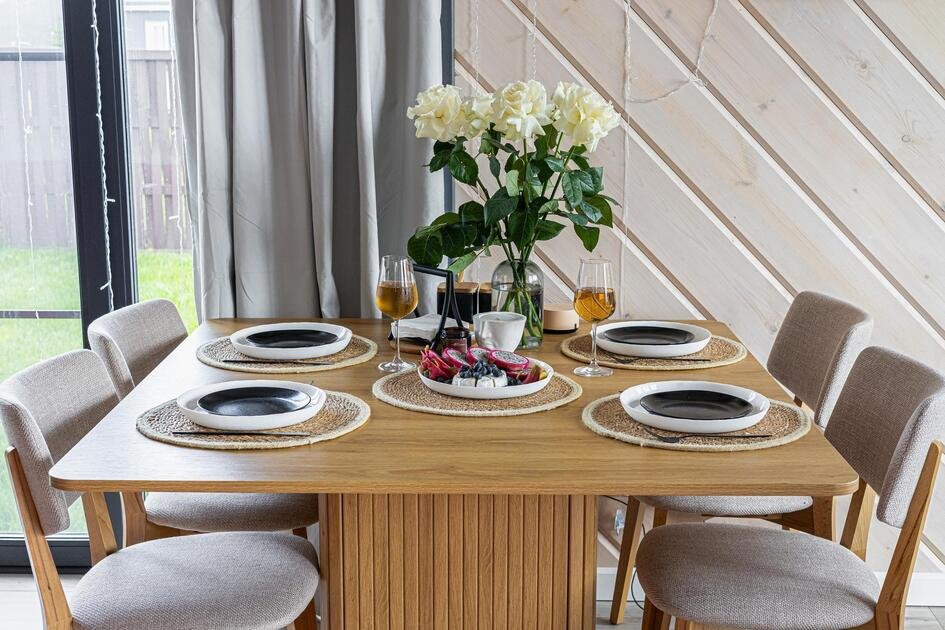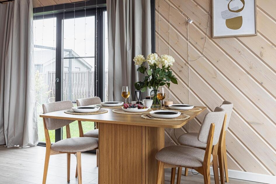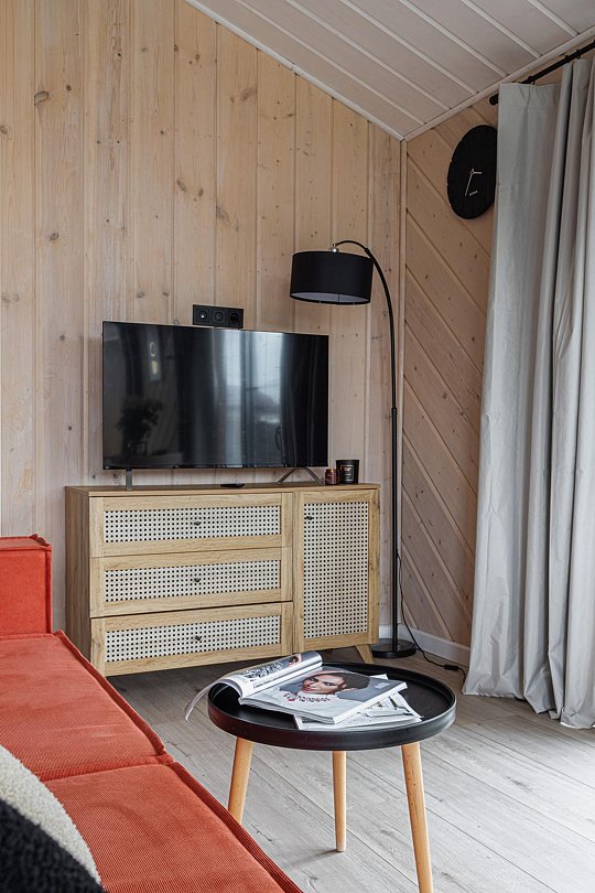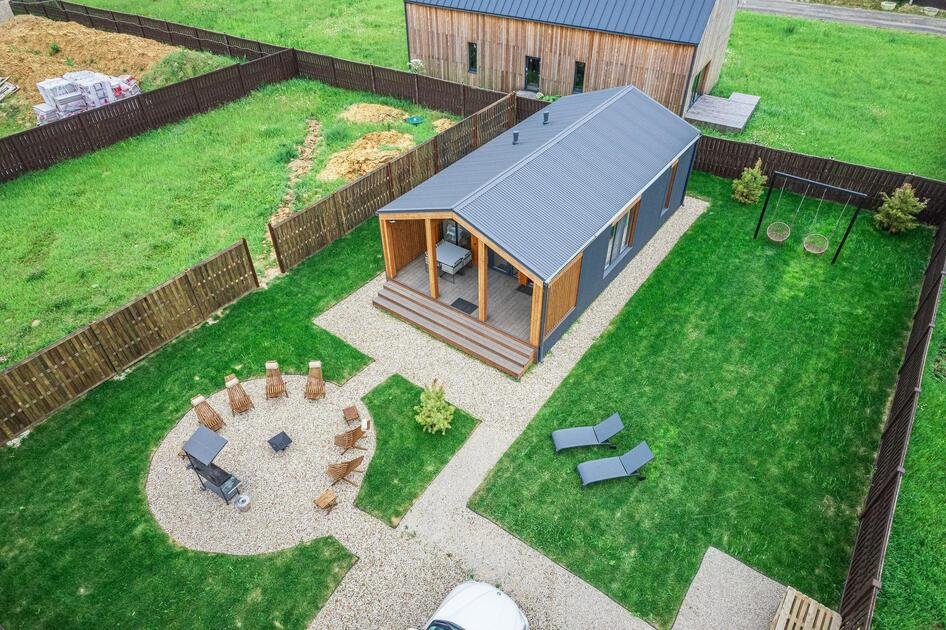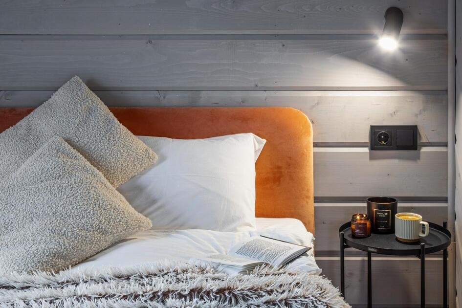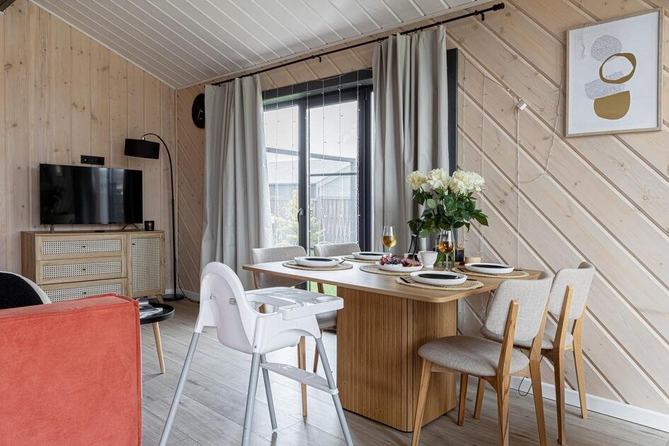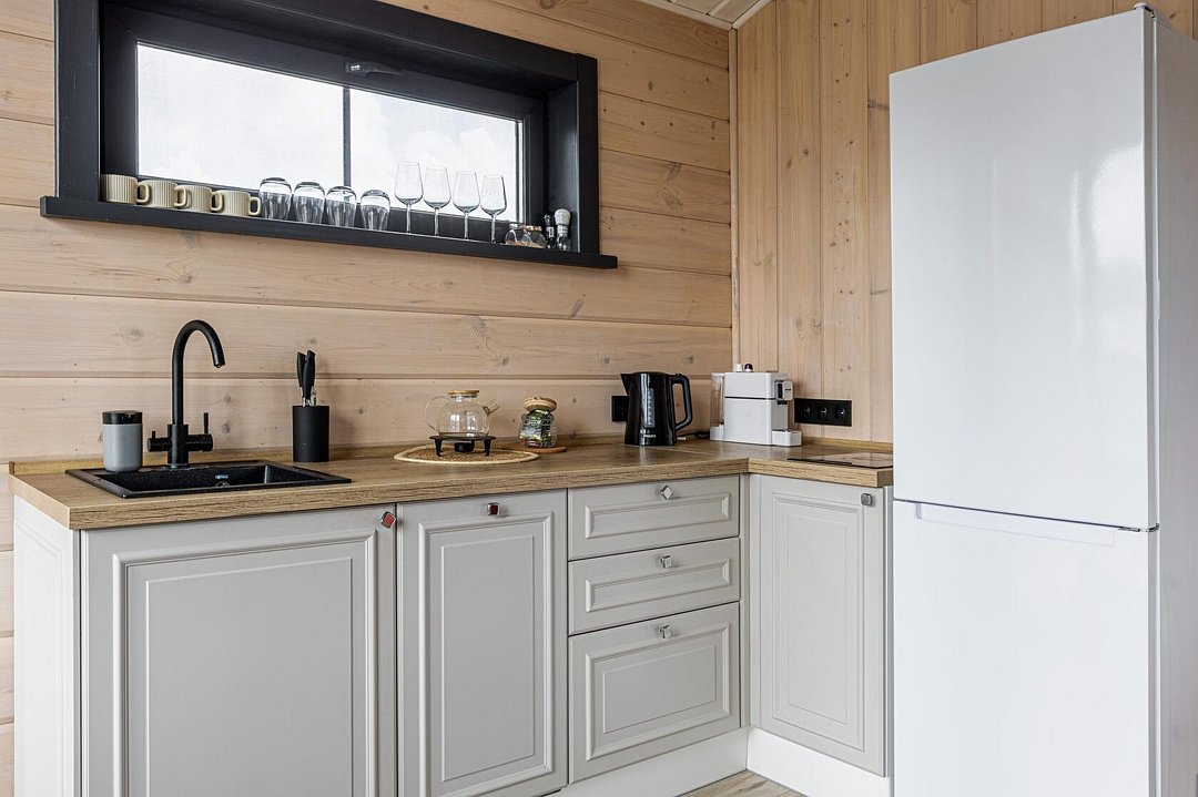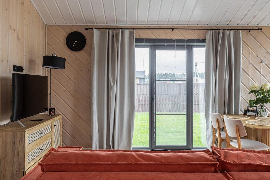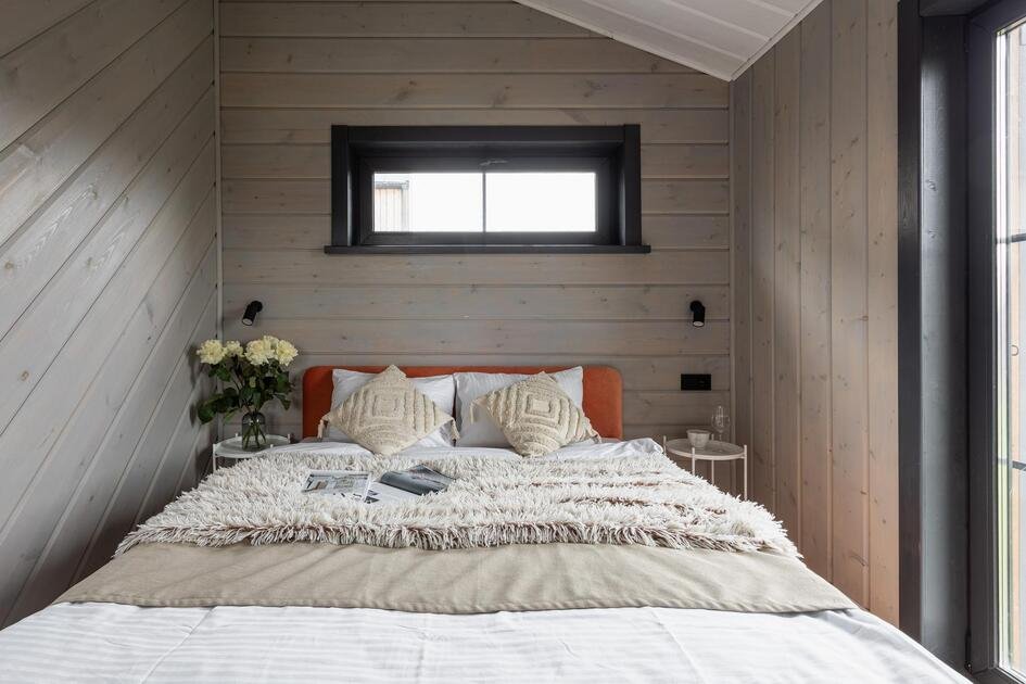 Внутри коттеджа расположены две отдельные спальни с просторными кроватями и кухня-гостиная с раскладывающимся диваном. Все удобства продуманы до мелочей: от современной кухонной техники и стильной мебели до чистого постельного белья, полотенец и гигиенических средств. Каждая деталь интерьера направлена на создание максимального комфорта.