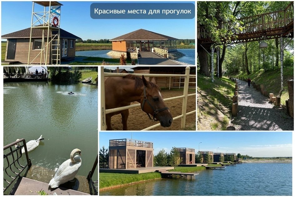 В шаговой доступности расположены магазины, фермерские палатки, цветочные и декоративные лавки. В 10 минутах езды находятся пункты доставки продуктов и товаров: ВкусВилл, Озон, СберМаркет, Перекрёсток и Пятёрочка. Лес находится неподалёку, а также озеро с песчаным пляжем, лежаками и зонами для отдыха. Для детей и любителей активного отдыха предусмотрены игровые и спортивные площадки, скалодром и теннисный корт.