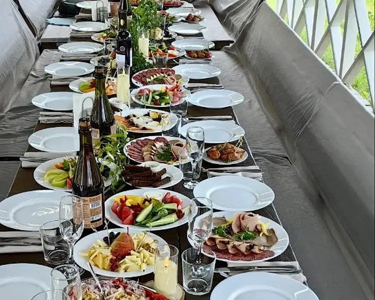 Ресторан также идеально подходит для организации мероприятий до 80 человек, таких как корпоративы, свадьбы, юбилеи и дни рождения, предоставляя комфортную атмосферу для любого праздника.