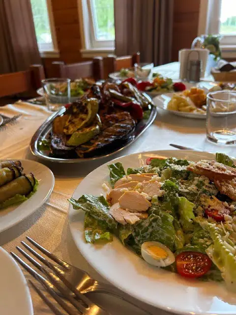 На территории загородной базы «Максипарк7Я» находится уютный ресторан, где гости могут наслаждаться кухней по заказному меню. Завтраки и ужины входят в стоимость проживания, а обеды предлагаются по индивидуальному запросу, что позволяет каждому гостю выбрать именно то, что ему по душе.