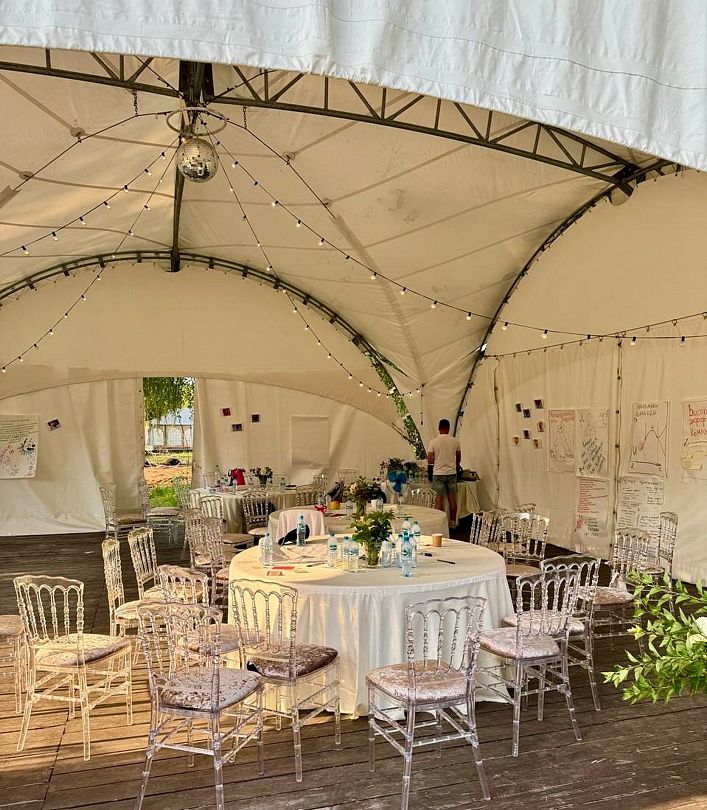 Читать полностьюБелоснежный шатер, способный вместить до 60 человек — это идеальное место для незабываемых свадеб, ярких выпускных, стильных корпоративов и торжественных юбилеев, где каждый момент станет поистине особенным. Погрузитесь в атмосферу утонченности и комфорта, наслаждаясь праздником в элегантном окружении на протяжении 6 часов и более.
