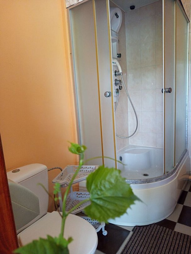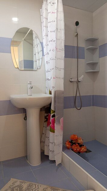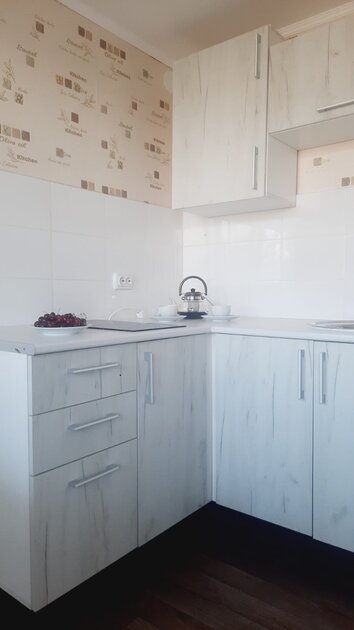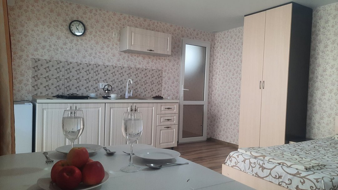 И в номере: небольшой холодильник, ванная комната с душем, мини-кухня со всеми кухонными принадлежностями.