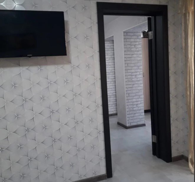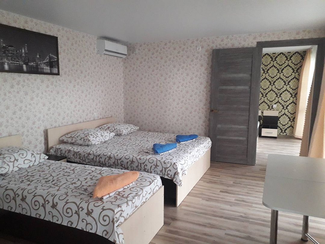 В номере имеется две раздельные комнаты, в одной комнате: телевизор, кондиционер, рабочий стол/тумба, двуспальная кровать, односпальная кровать, раскладное кресло-кровать. И в номере: небольшой холодильник, ванная комната с душем.