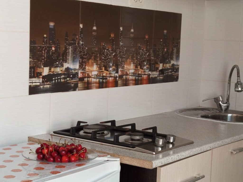 В номере имеются: телевизор, рабочий стол/тумба, небольшой холодильник, кондиционер, ванная комната с душем, мини-кухня со всеми кухонными принадлежностями.