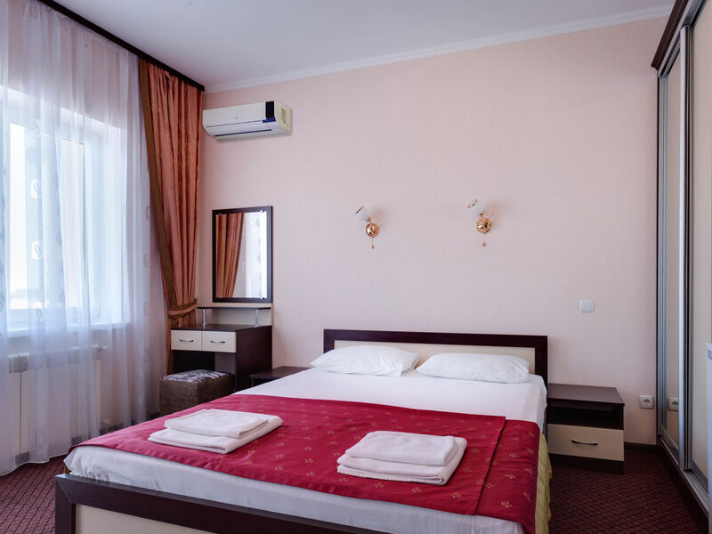 В отеле доступно 60 мест в номерах разной категории, от стандартов, до апартаментов. Кровати в комнатах двуспальные и односпальные, из бытовой техники имеется телевизор, кондиционер, небольшой холодильник. В каждом номере отдельная ванна я комната с туалетом и душем.