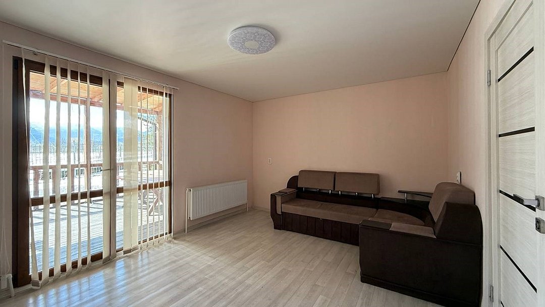 Гостевой семейный дом для компании до 8 человек. Есть все необходимое для комфортного проживания: - 2 спальни с двухспальными кроватями; - 2 гостинные с раскладными диванами; - кухня с набором посуды(на 10 персон) и бытовой техники,; - два совмещенных санузла с туалетом, душем и раковиной, - зона для барбекю и потрясающие виды на горы.Услуги и удобства