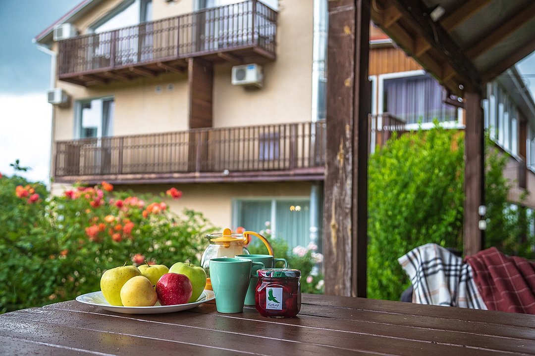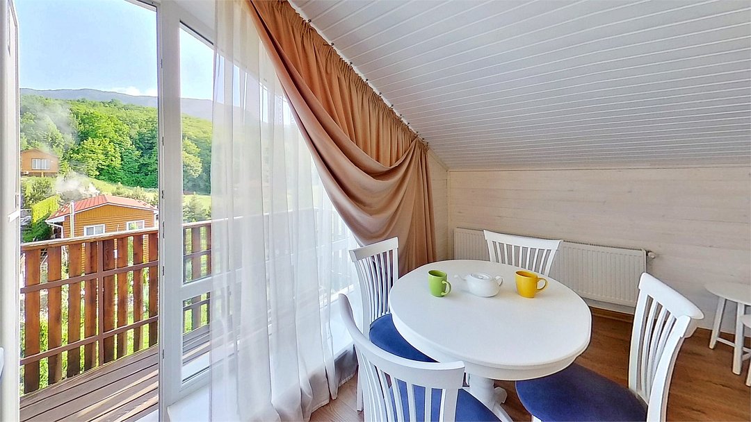 Уютный домик «Шале» - новый номер, открытый в усадьбе «Кутлер» летом 2019года. Прежде всего это закрытая территория, где никто не сможет Вас побеспокоить. Номер состоит из двух комнат, уютной спальни и гостиной. Авторский дизайн покорит Вас своим интерьером. В «Шале» могут разместиться с комфортом до 5-и человек. В распоряжении отдыхающих в номере «Шале» крытая летняя терраса с видом на горы. Уединённый комфортный отдых Вам гарантирован!Услуги и удобства