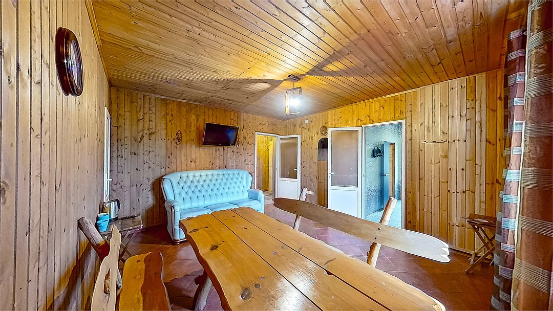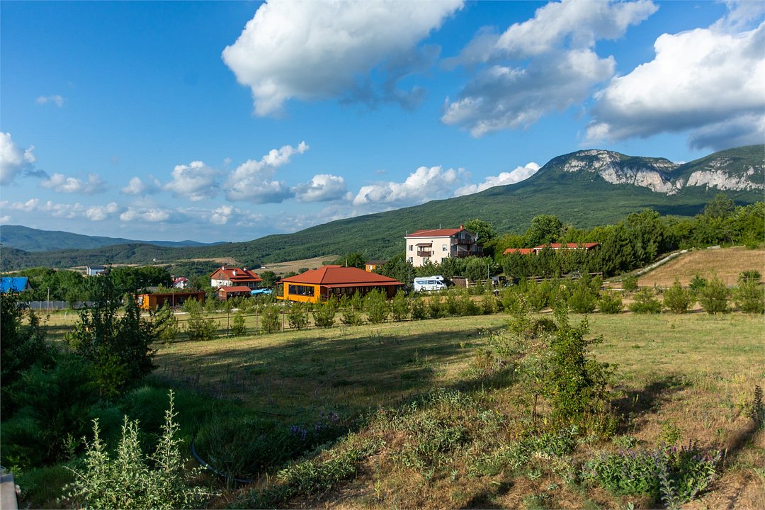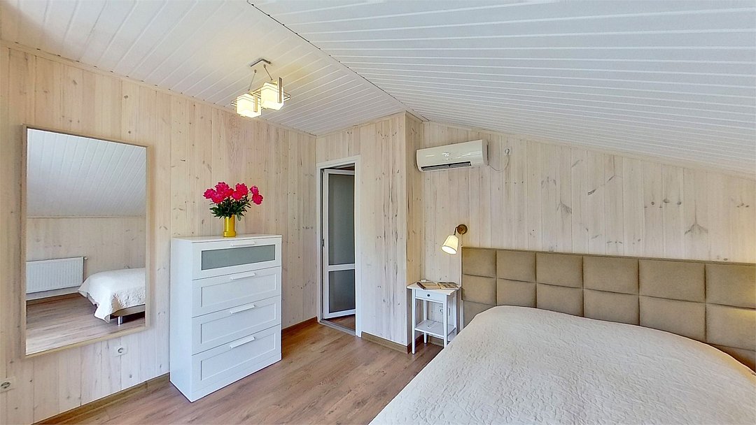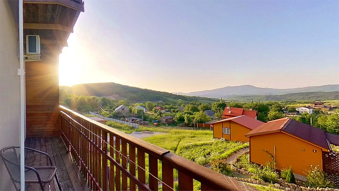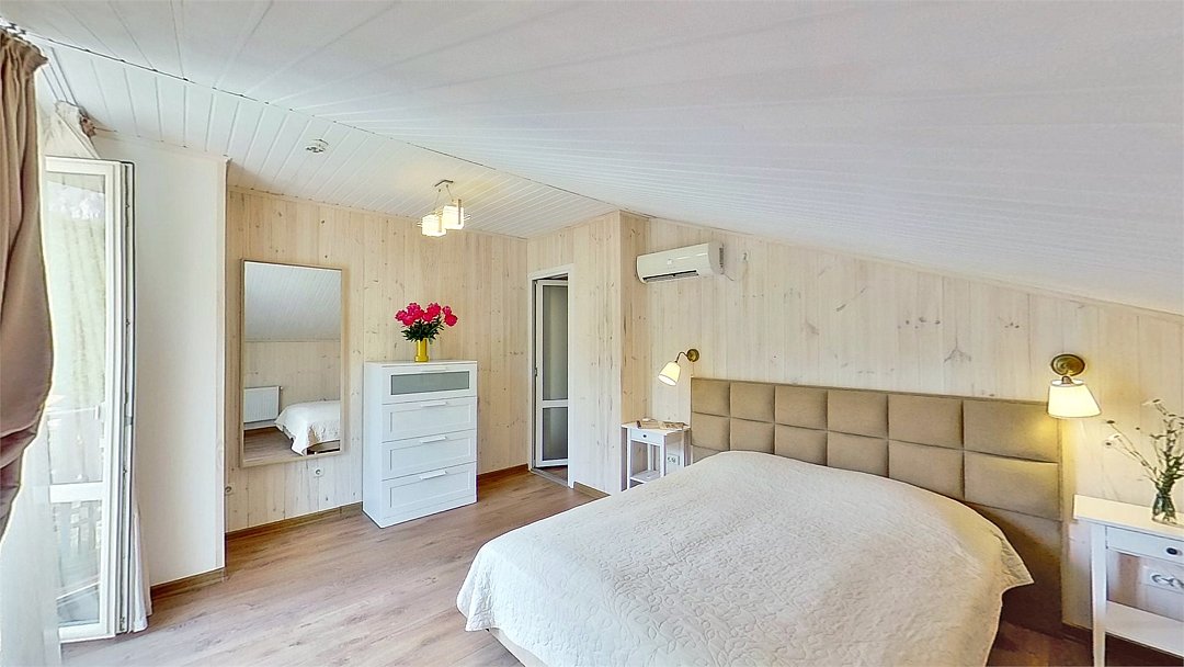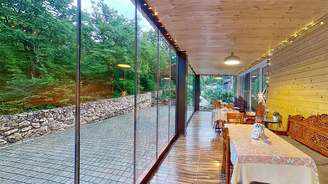 телевизор, спутниковое телевидение, Wi-Fi, холодильник, кондиционер, светильник, фен, ванная комната, терраса, две двуспальные кровати, диван, тумбы, стулья, шкаф для одежды, вешалки, журнальный столик, обеденный стол, зеркало, комод, две комнаты, стул, стол, вид на горы, можно с питомцамиВ коттедже