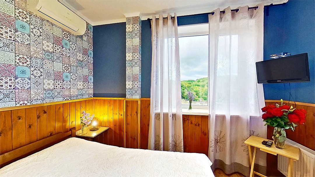 телевизор, Wi-Fi, холодильник, кондиционер, санузел, балкон, двуспальная кровать, тумбы, стулья, зеркало, душ, вид на город, стол, диван-кровать, раскладной диван, вид на лес, можно с питомцамиВ номере