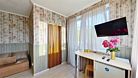 Изюминкой нашей гостиницы в Соколином являются номера категории Студио с балконом - Мансарда Малахит и Мансарда Оникс. Студио с балконом - это большой однокомнатный номер, площадью 30 кв.м. и персональным санузлом (11 кв.м.). Номер расположен на третьем этаже. Очень уютные, светлые номера с панорамными окнами и персональным балкончиком (около 3 кв.м.) со всеми удобствами.Услуги и удобства