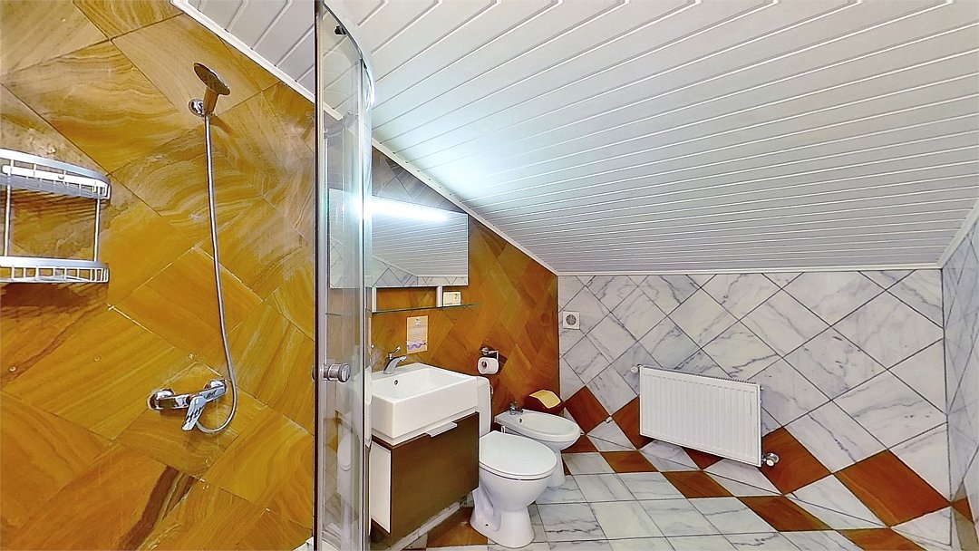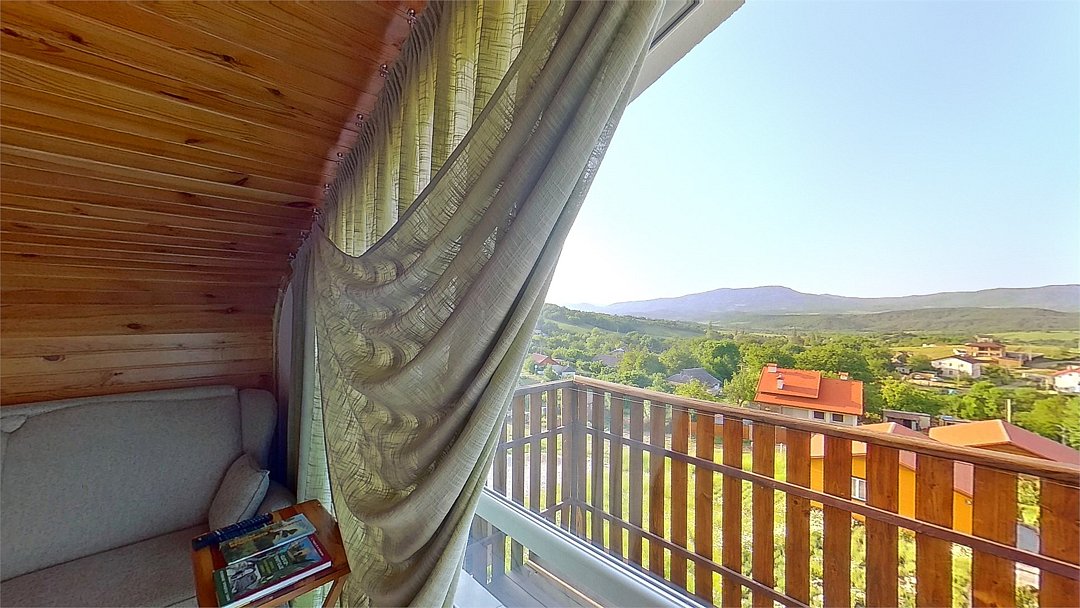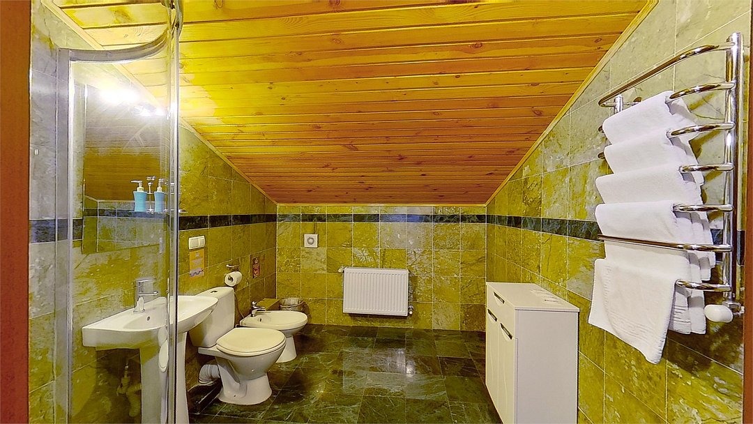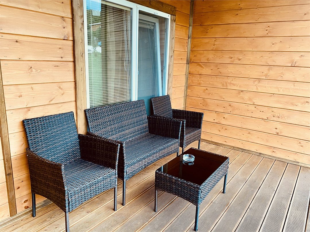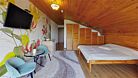 телевизор, спутниковое телевидение, Wi-Fi, холодильник, фен, душевая кабина, санузел, банные полотенца, тапочки, терраса, двуспальная кровать, диван, стулья, шкаф для одежды, вешалки, журнальный столик, стол, туалет, сплит-система, раскладной диван, вид на горы, можно с питомцамиВ номере