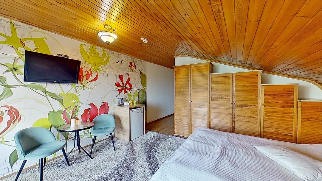 Номер категории Люкс двухкомнатный с балконом расположен на третьем этаже нашего гостевого дома. Номер данной категории впервые предлагается гостям Усадьбы. Большой двухкомнатный номер, общей площадью более 30 кв.м. отлично подойдет семье из 4-х человек. В номере имеется индивидуальный санузел и балкончик.Услуги и удобства