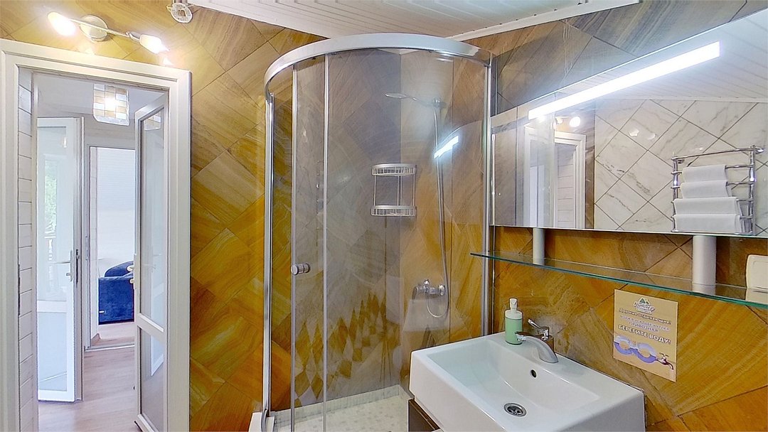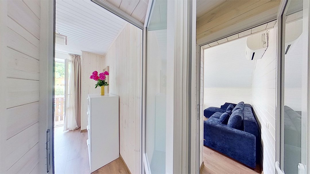 спутниковое телевидение, Wi-Fi, холодильник, кондиционер, фен, ванная комната, душевая кабина, теплый пол, банные полотенца, тапочки, гигиенические средства, терраса, двуспальная кровать, диван, стулья, шкаф для одежды, обеденный стол, зеркало, кресло, туалет, сплит-система, раскладной диван, телевизор с плоским экраном, вид на горы, можно с питомцамиВ номере
