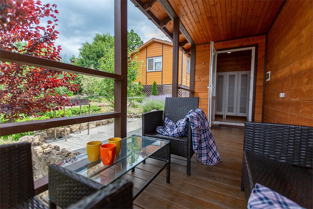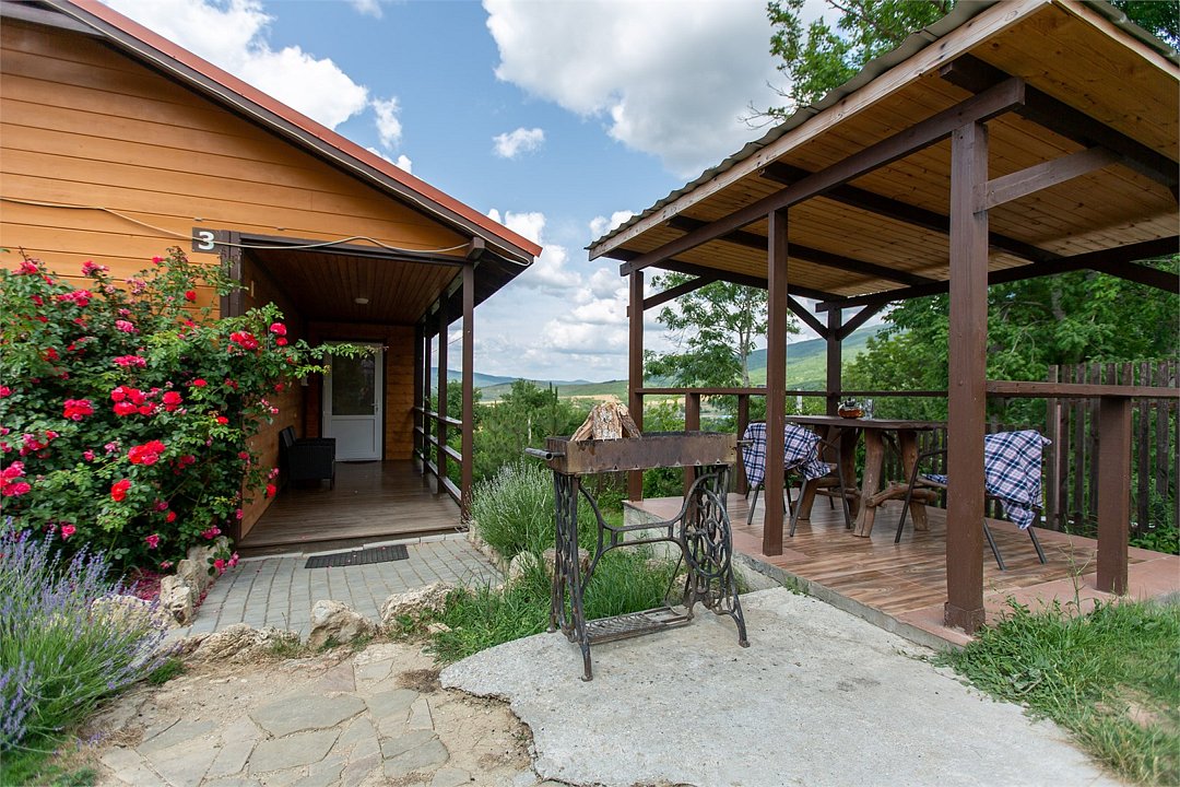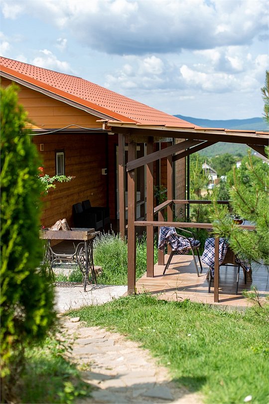 Уютный домик «Шале» - новый номер, открытый в усадьбе «Кутлер» весной 2019 года. Прежде всего это закрытая территория, где никто не сможет Вас побеспокоить. Номер состоит из двух комнат, уютной спальни и гостиной. Авторский дизайн покорит Вас своим интерьером. В «Шале» могут разместиться с комфортом до 5-и человек. В распоряжении отдыхающих в номере «Шале» крытая летняя терраса с видом на горы. Уединённый комфортный отдых Вам гарантирован!Услуги и удобства
