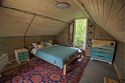Уютный двухместный домик с видом на горы и лесистую местность. Оснащен двумя односпальными кроватями.