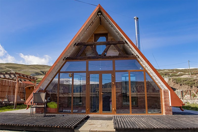 Уютные семейные домики с панорамным, открывающими незабываемый вид на Кавказский хребет. 2 спальни и просторная гостевая с кухонной зоной, а также терраса с садовой мебелью.
