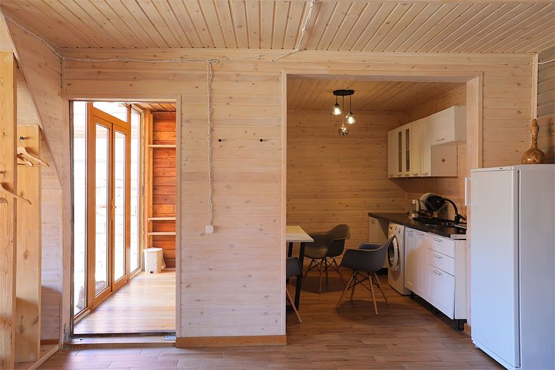 Душ и уборная в другом помещении, на то оно и глэмпинг. Хотя строятся новые домики сейчас, где сказали будут уже прямо в них удобства.