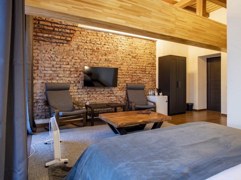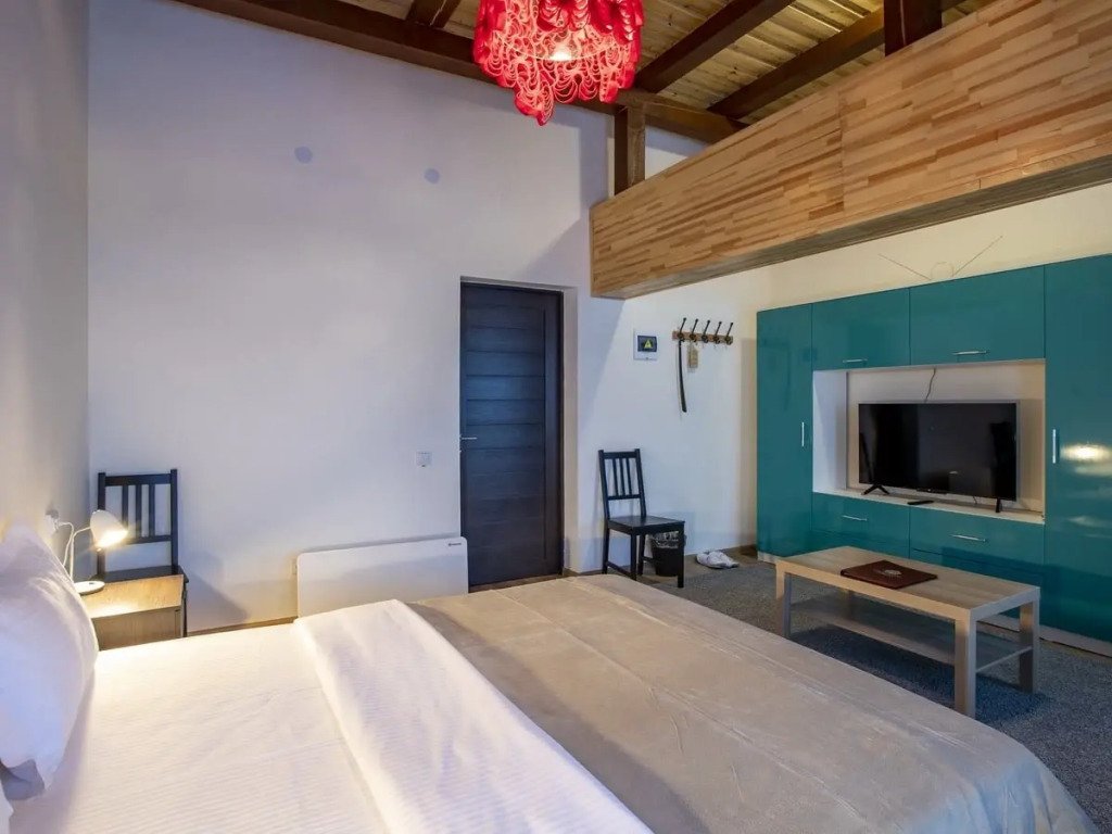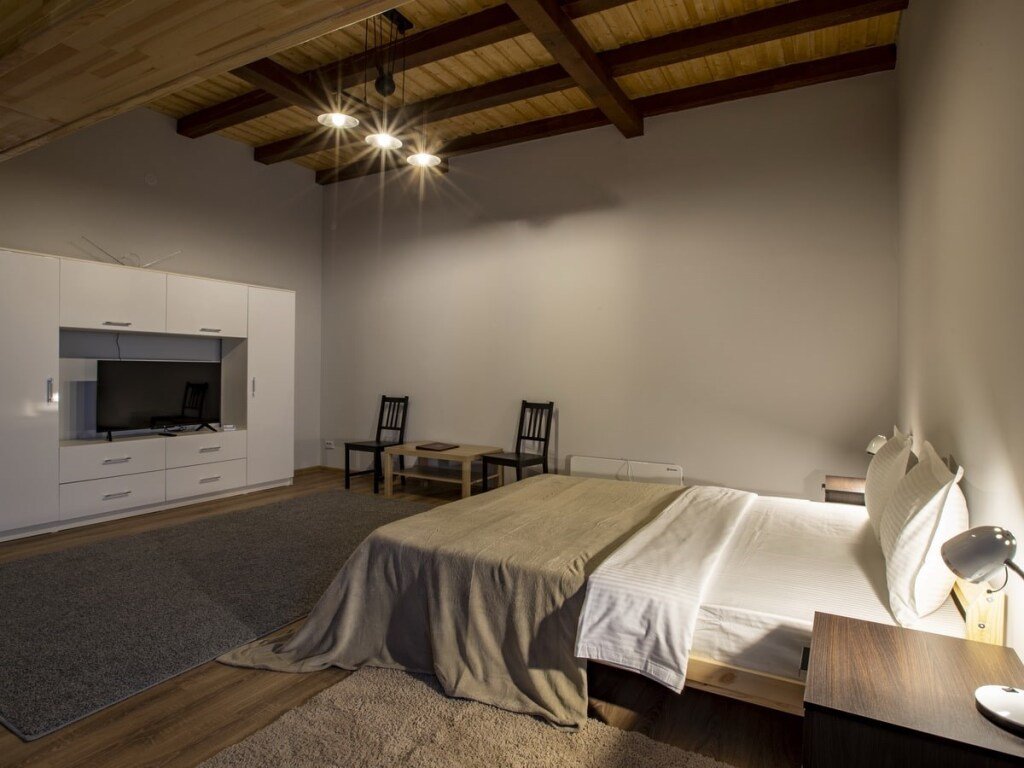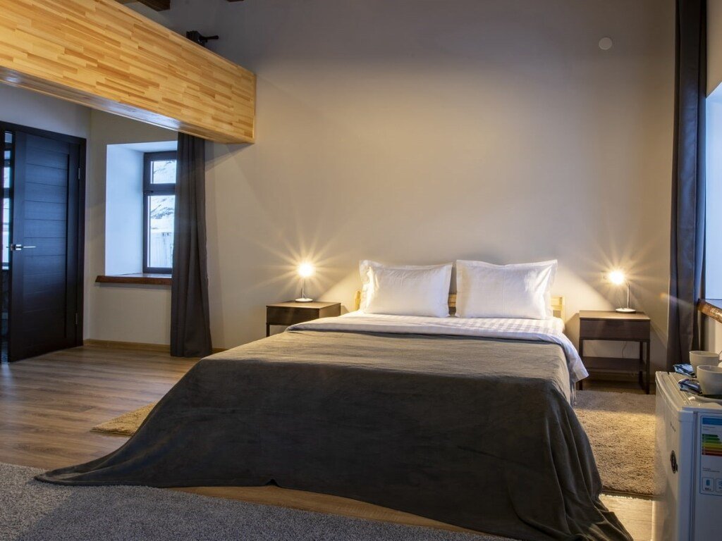 Номер уютно обставлен и оснащён необходимым, чтобы отдохнуть после долгого и насыщенного дня. Имеются телевизор. Оснащение зависит от выбранной категории номера.