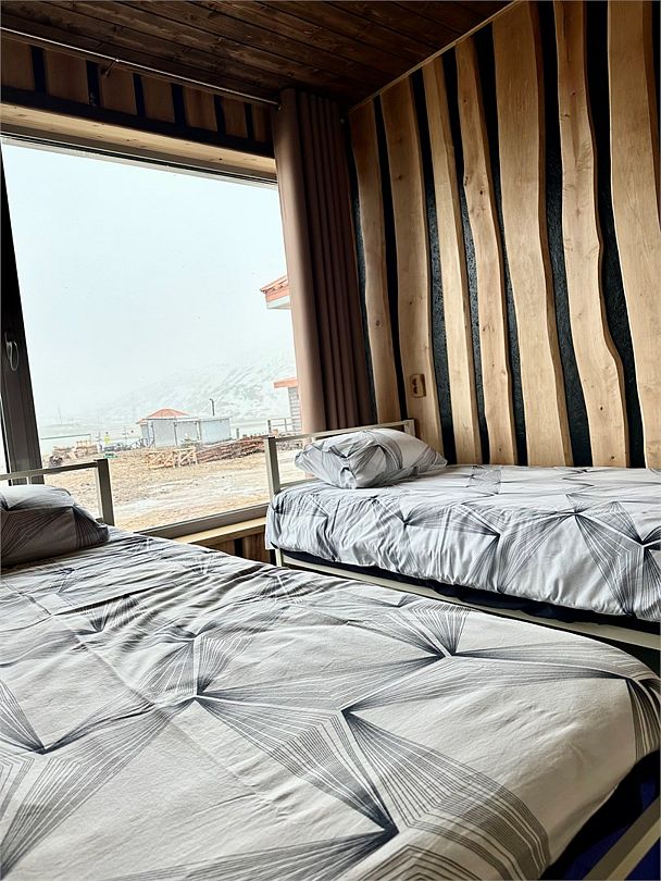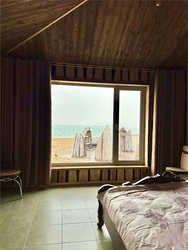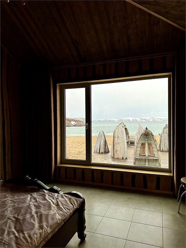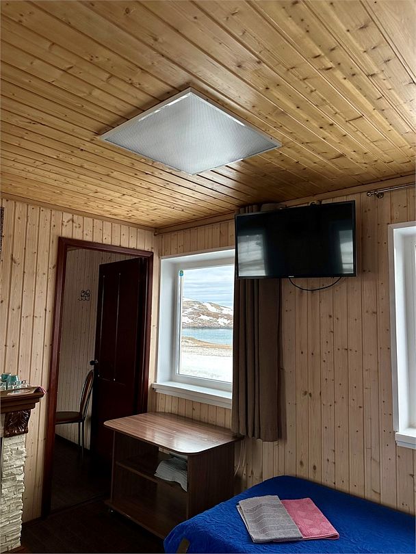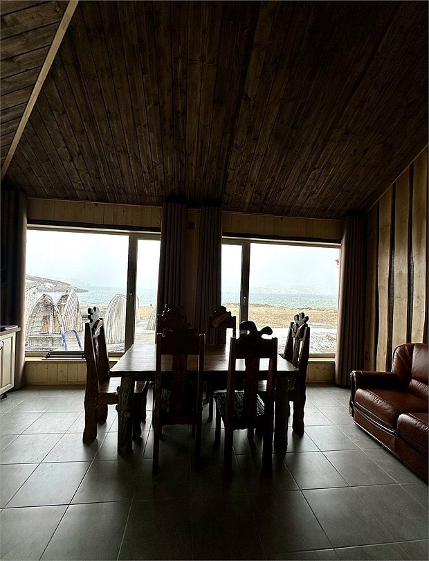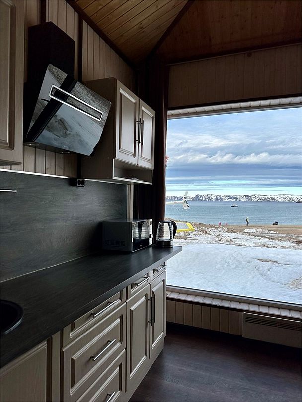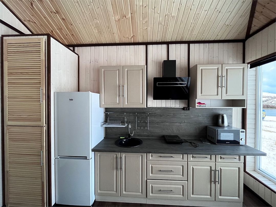 Насладитесь единением с природой в новом доме на берегу Баренцева моря с панорамными видами на бескрайние просторы и песчаный пляж. Уникальная локация позволяет просыпаться под шум прибоя, встречать незабываемые рассветы и любоваться северным сиянием прямо из спальни. Архитектура и планировка: • Панорамная спальня с видом на море и двуспальной кроватью • Функциональная кухонная зона, полностью укомплектованная техникой (холодильник, электрическая плитка, чайник) и набором посуды • Гостиная зона с кожаным диваном-трансформером (дополнительное спальное место) • Ванная комната с душевой кабинойУслуги и удобства