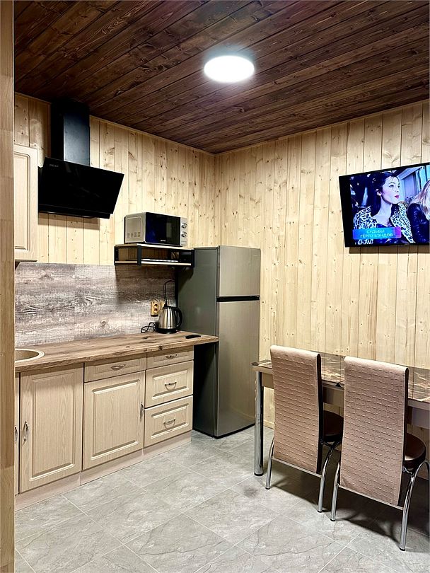 - Встроенная кухня со всеми принадлежностями для приготовления пищи,