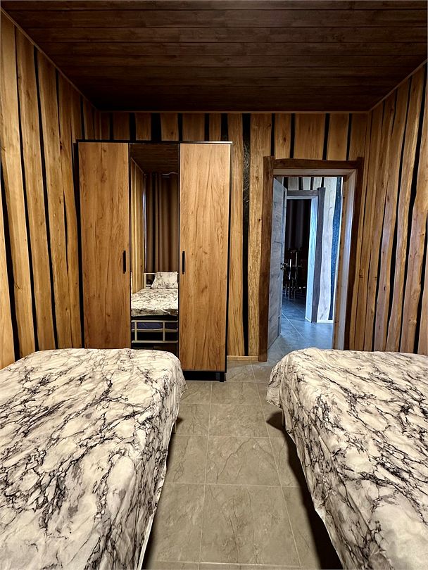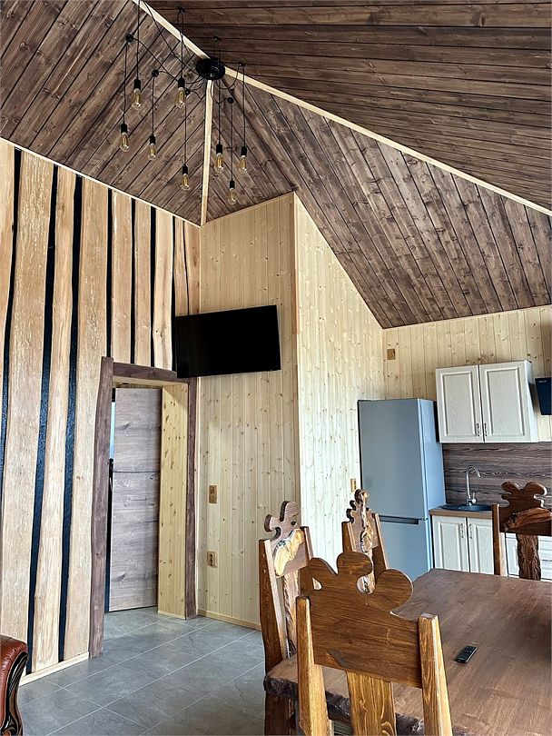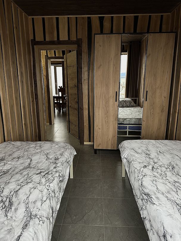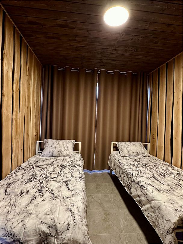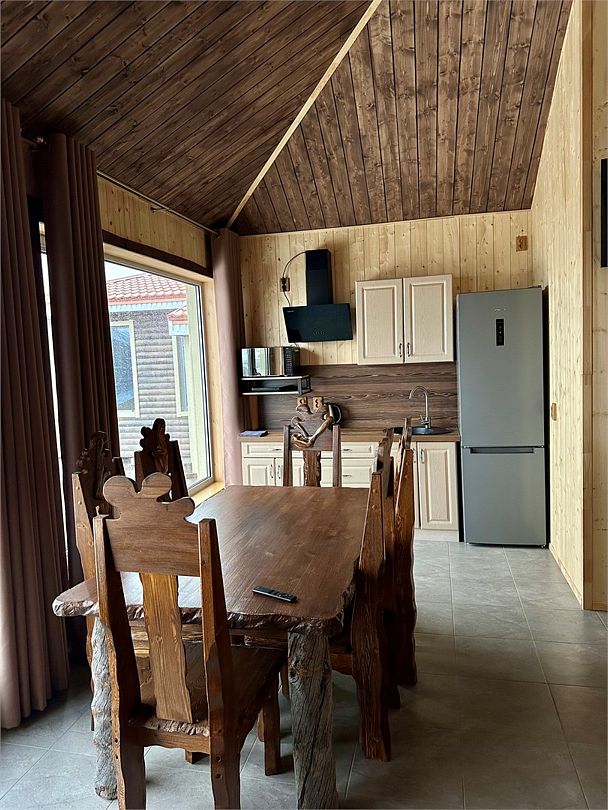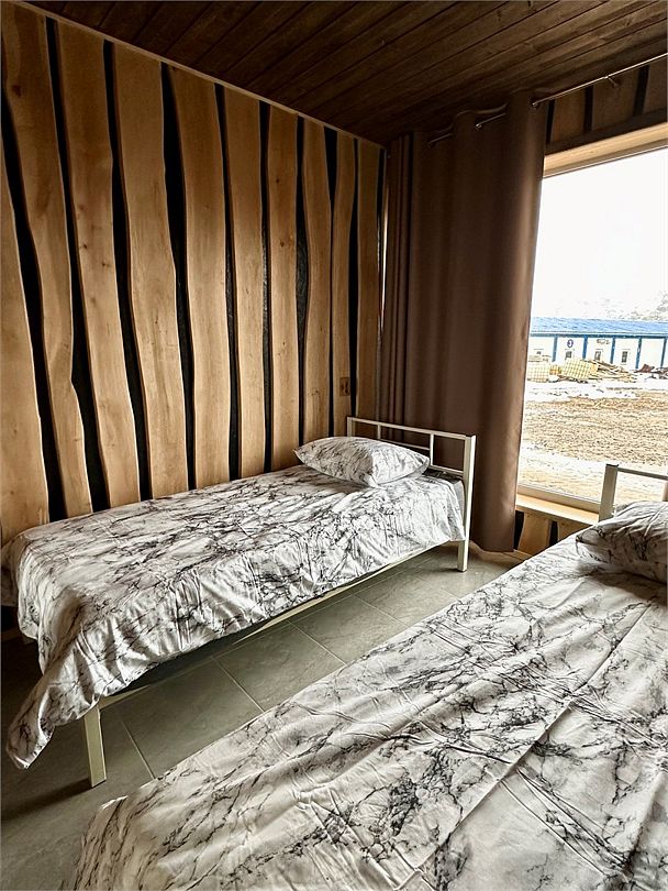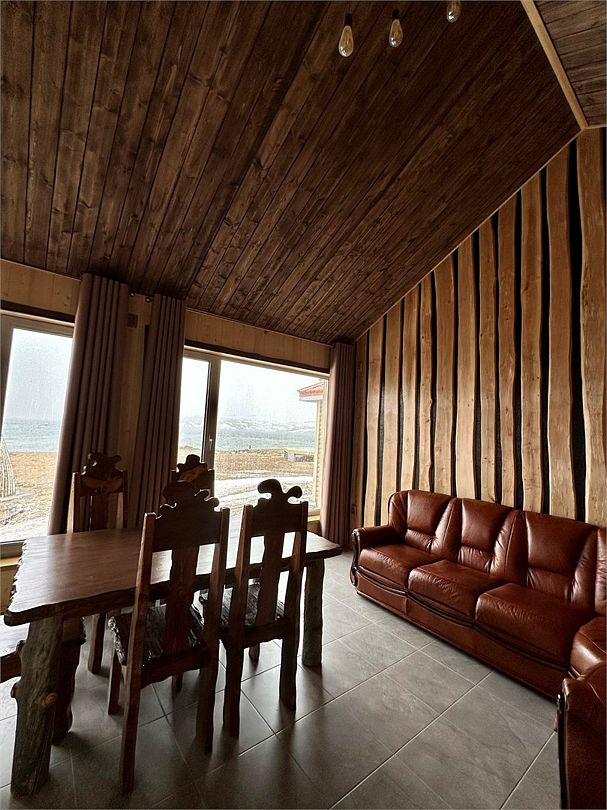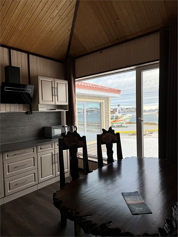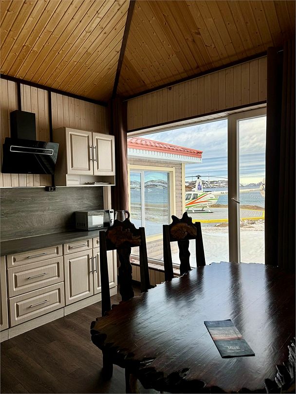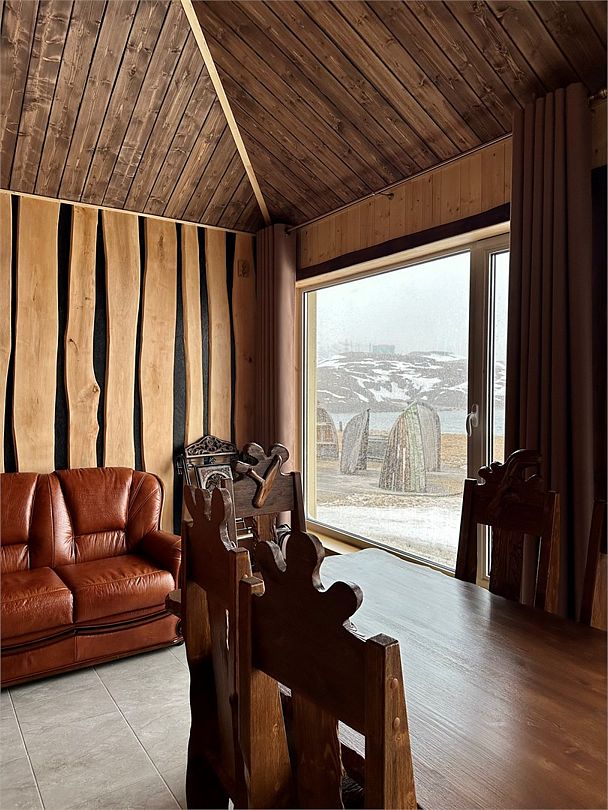 ДОМ №5 и №6 Атмосфера уюта и эксклюзива Интерьер дома создает особую гармонию, где современный комфорт встречается с душой северной природы. Центром его стали предметы мебели из цельного дерева ручной работы – каждая деталь, от обеденного стола до изголовья кровати, хранит тепло натуральных материалов и мастерства, наполняя пространство неповторимым характером и уютом. Две спальни: - Уютные комнаты с панорамными окнами - В каждой: две односпальные кровати - Затемняющие шторы blackout для комфортного отдыха Гостиная - Интегрированная зона отдыха и кухни - Стильный кожаный диван (дополнительное спальное место) - Обеденный стол на 6 персон - Телевизор для вечернего досуга - Панорамный вид на море Кухня - Полностью оборудованная зона с плитой и вытяжкой - Микроволновая печь, холодильник, чайник - Специальная чайная станция - Полный комплект посуды Комфорт - Климат-контроль (сплит-система) - Современный санузел с душевой кабиной - Предоставляется фен, косметические средства и полотенца Каждая деталь создана для того, чтобы ваш отдых стал совершенным — от продуманного интерьера до величественных видов за окном.Услуги и удобства